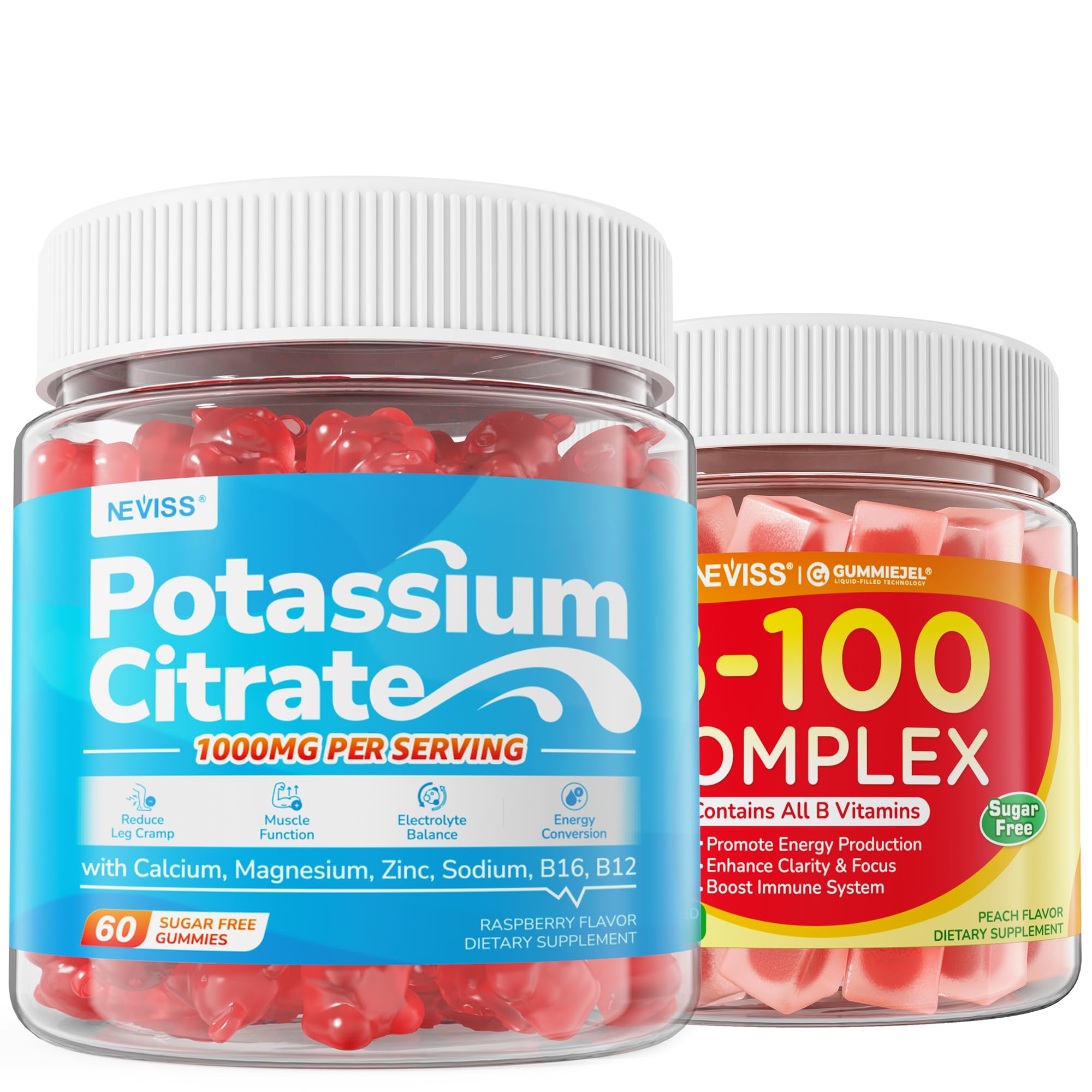 NEVISS 1 Pack Super Vitamin B Complex Gummies + 1 Pack Potassium Citrate 1000mg Gummies