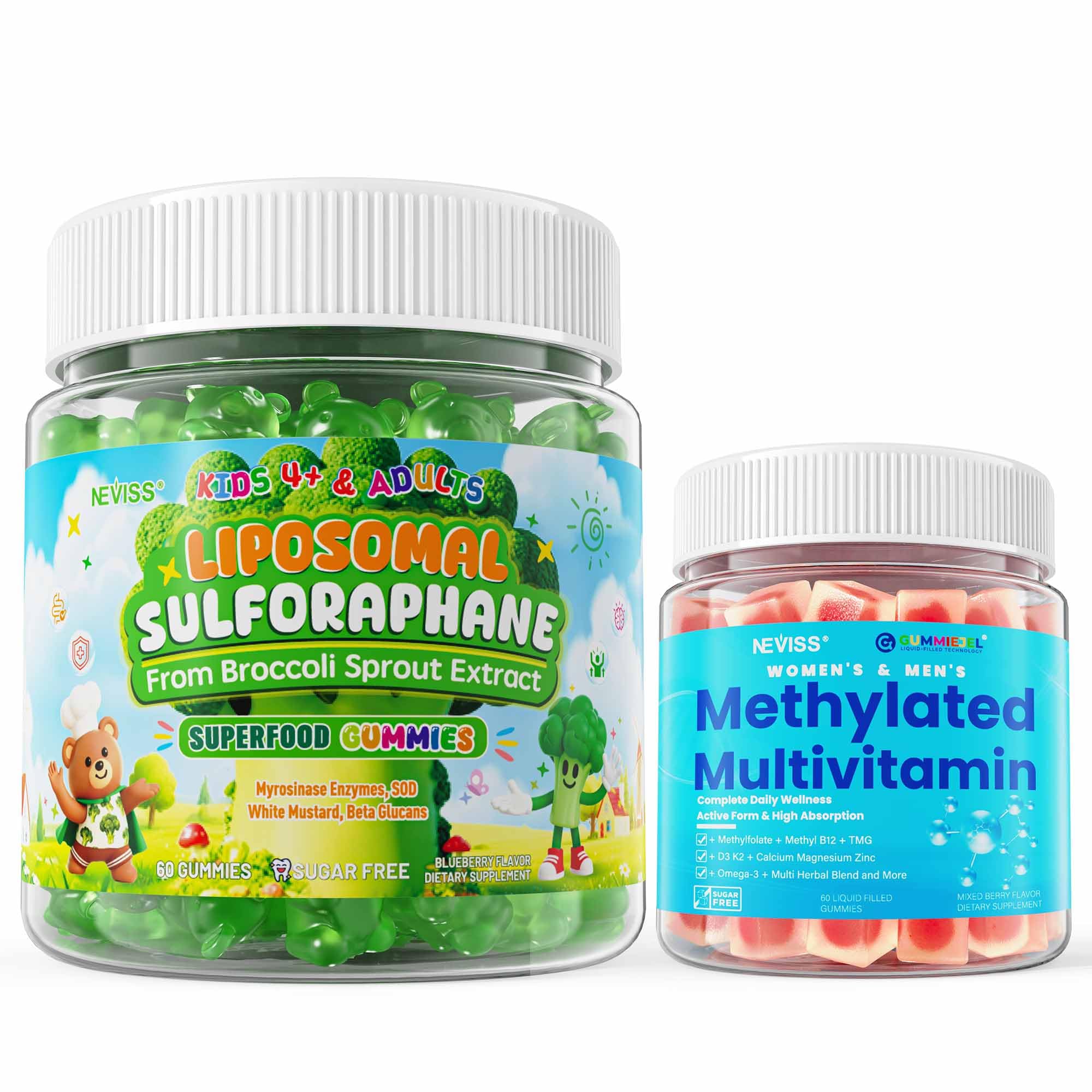 NEVISS 2p Liposomal Sulforaphane Gummies + 1p Methylated Multivitamin for Women & Men Gummies