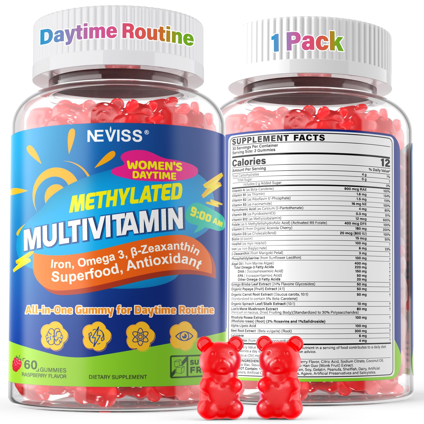 [Thrive in Every Role: CEO, Mom, Explorer, You.]You're not just one thing, and your supplement shouldn't be either. This is precision nutrition for the woman who wears many hats. It supports your brain with Lion's Mane, and immune with Vitamin C D3. Whether you're powering through a presentation, recovering from a workout, or packing for a trip, we provide the core support for you to perform, recover, and truly thrive in every aspect of your incredible life. [Glow From Within, For A Life That Shines.] Your skin, hair, and vitality are on a lifelong journey. We support them 12 7. By day, Zeaxanthin Lycopene help protect from blue light and pollution. This isn't a quick fix, it's a long-term investment in your radiance, helping you feel confident and vibrant in your 20s, 30s, 40s, 50s, 60s and beyond. [Find Your C?lm Balance, Wherever Life Takes You.] For the h?rmonal ebbs and flows that come with a life fully lived. We support your inner balance with key nutrients-Multivitamin. The Rhodiola in the methylated multivitamin gummy helps your body physically adapt to str?ss. From busy work weeks to workouts, this duo helps you maintain resilience through all of life's transitions and travels. [Your Daily Power-Up for a Demanding World.] Whether you're crushing a deadline, chg kids, or exploring a new city, daytime multivitamin gummy is your trusted ally. We go beyond basic B vitamins with activated, methylated forms (B12 Folate) your body can actually use, for real, jitter-free energy. Rhodiola, Ginkgo sharpen your focus, while Omega-3 is brain food for clear thinking. With antioxidants - Astaxanthin Lycopene, you get energy to own your day, from home, office to hiking trail. [Gluten-free, soy-free, wheat yeast-free and NON-GMO. 3rd-Party Tested.].