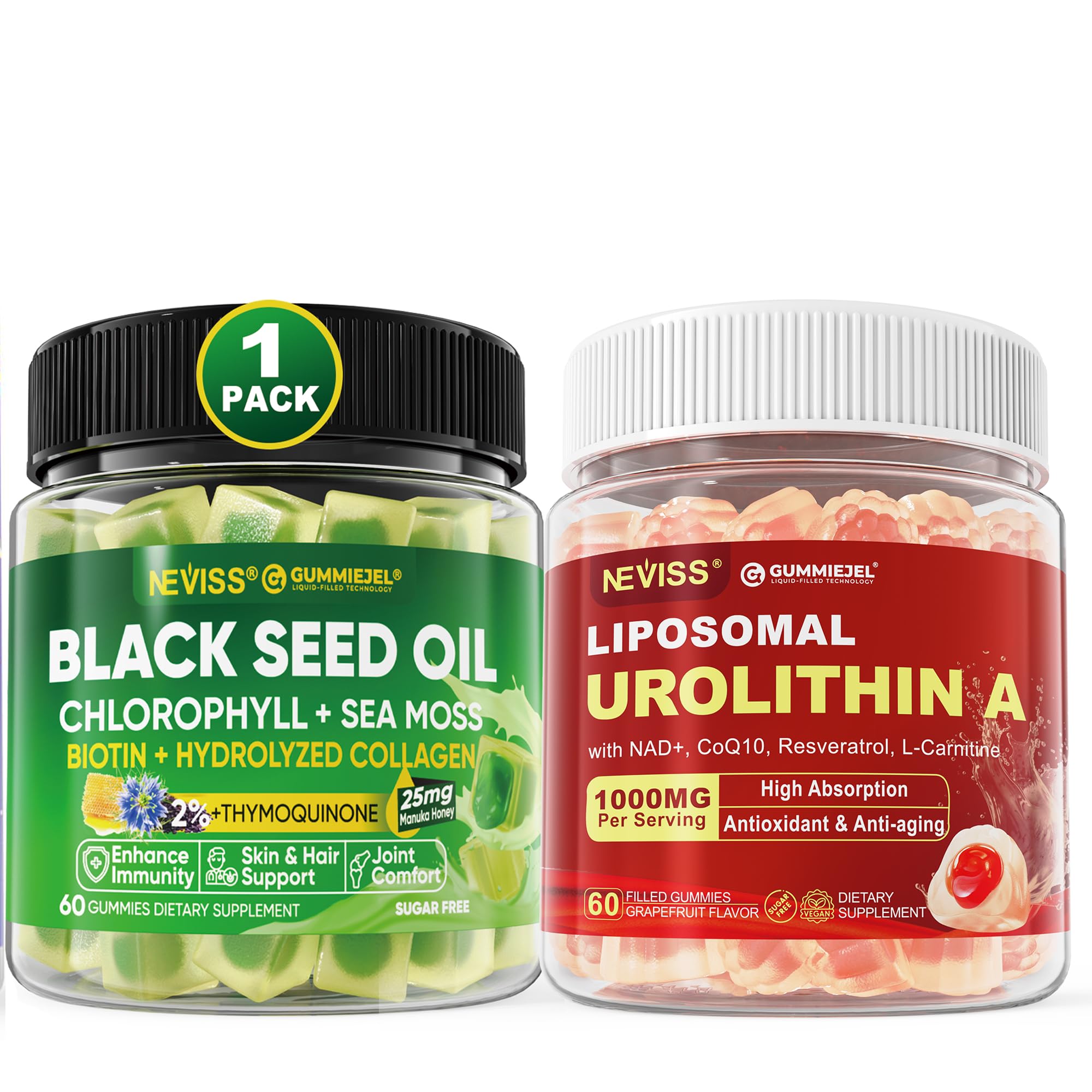 NEVISS Black Seed Oil Gummies + Urolithin A 1000mg Gummies