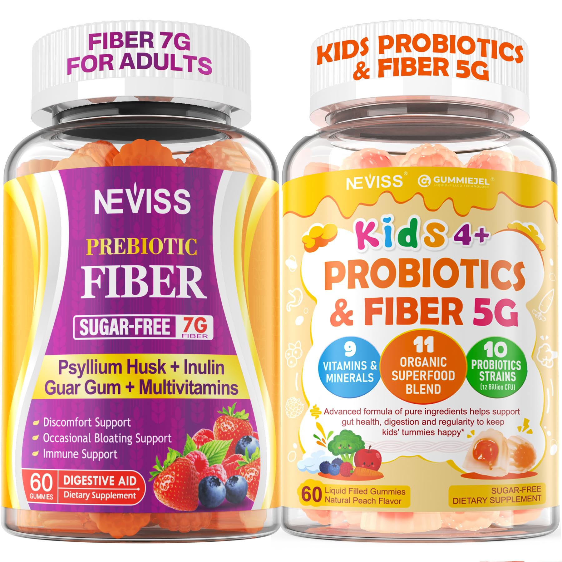 NEVISS Fiber Gummies for Adults & Probiotics for Kids Teen + Veggie & Fruit Fiber Gummies