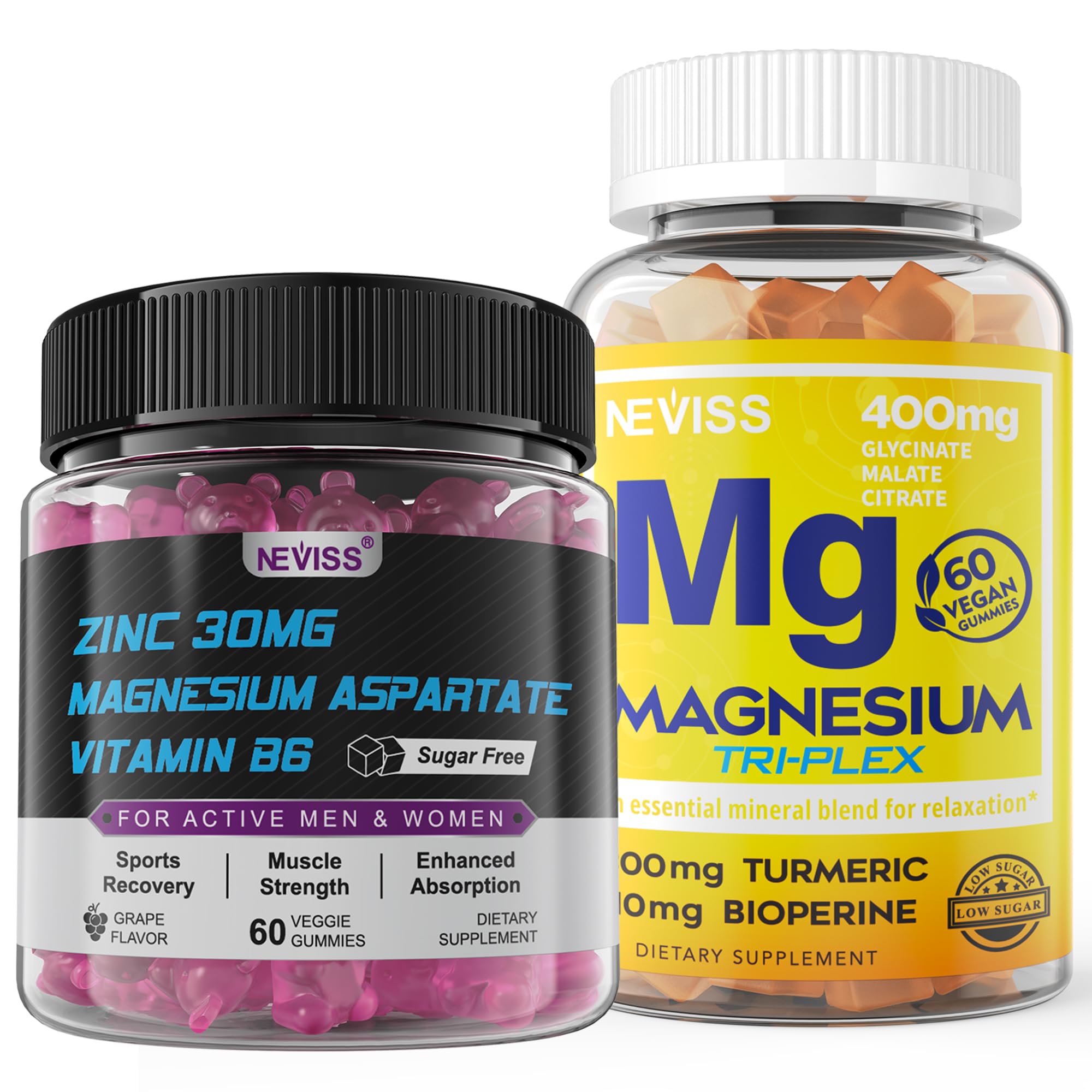 NEVISS Magnesium Gummies with Turmeric 300mg + Zinc and Magnesium Supplement with Vitamin B6 B12 D3 Turmeric