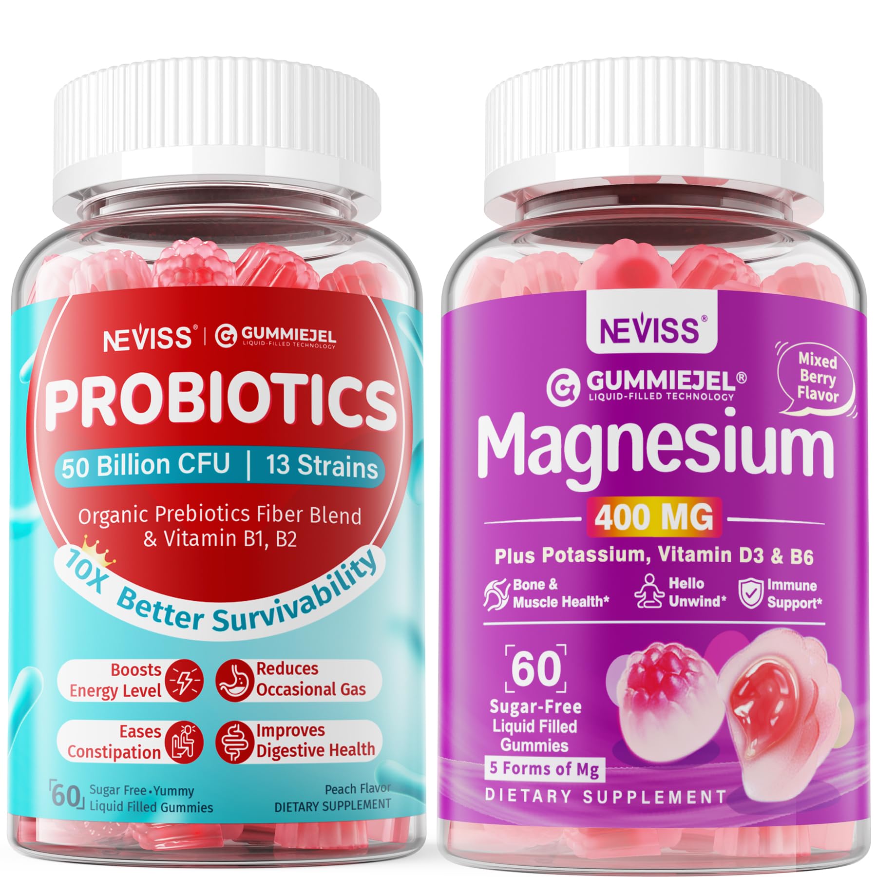 NEVISS Magnesium Supplements 400mg + Sugar Free Probiotics Gummies