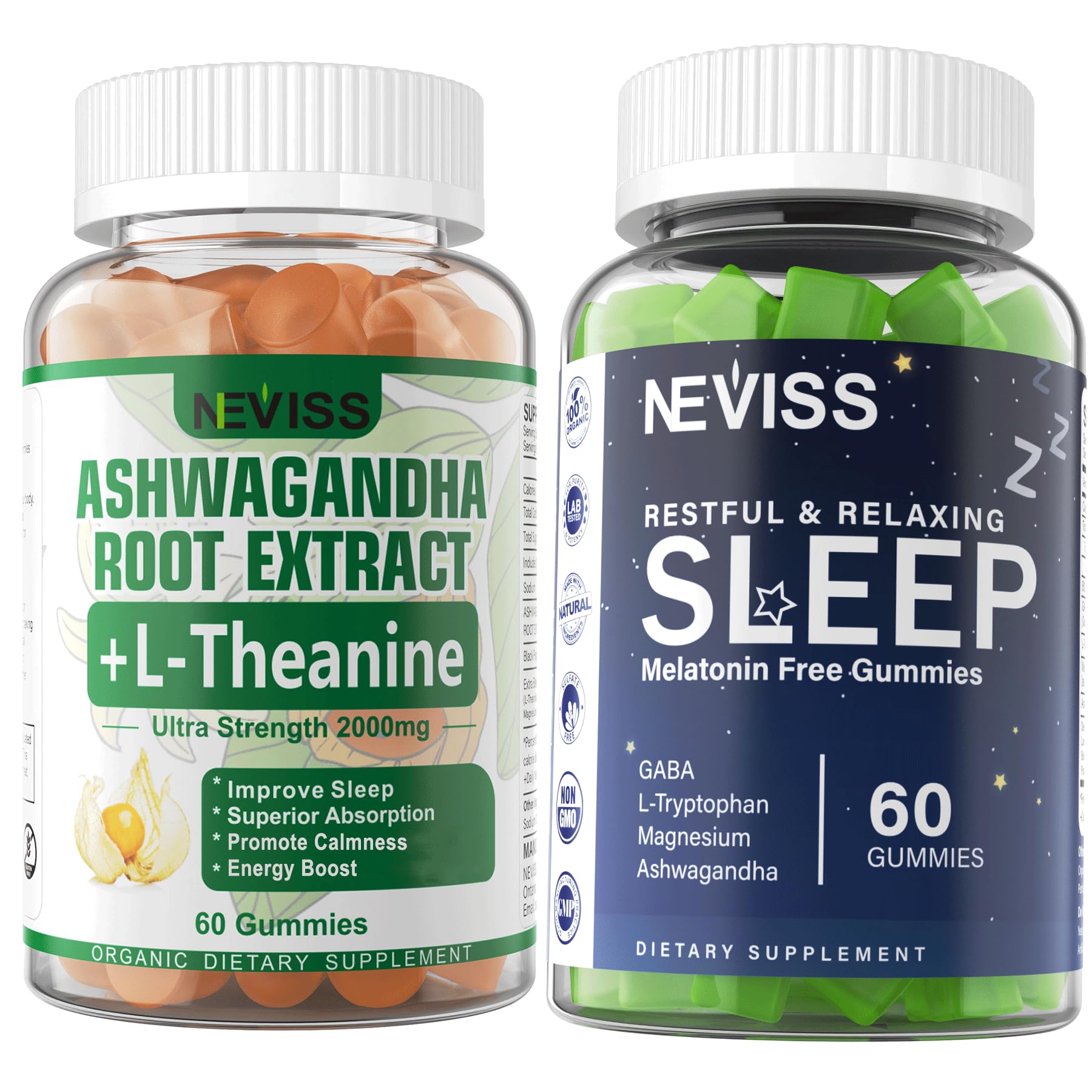 NEVISS Melatonin Free Sleep Gummies + Ashwagandha Gummies 2000mg