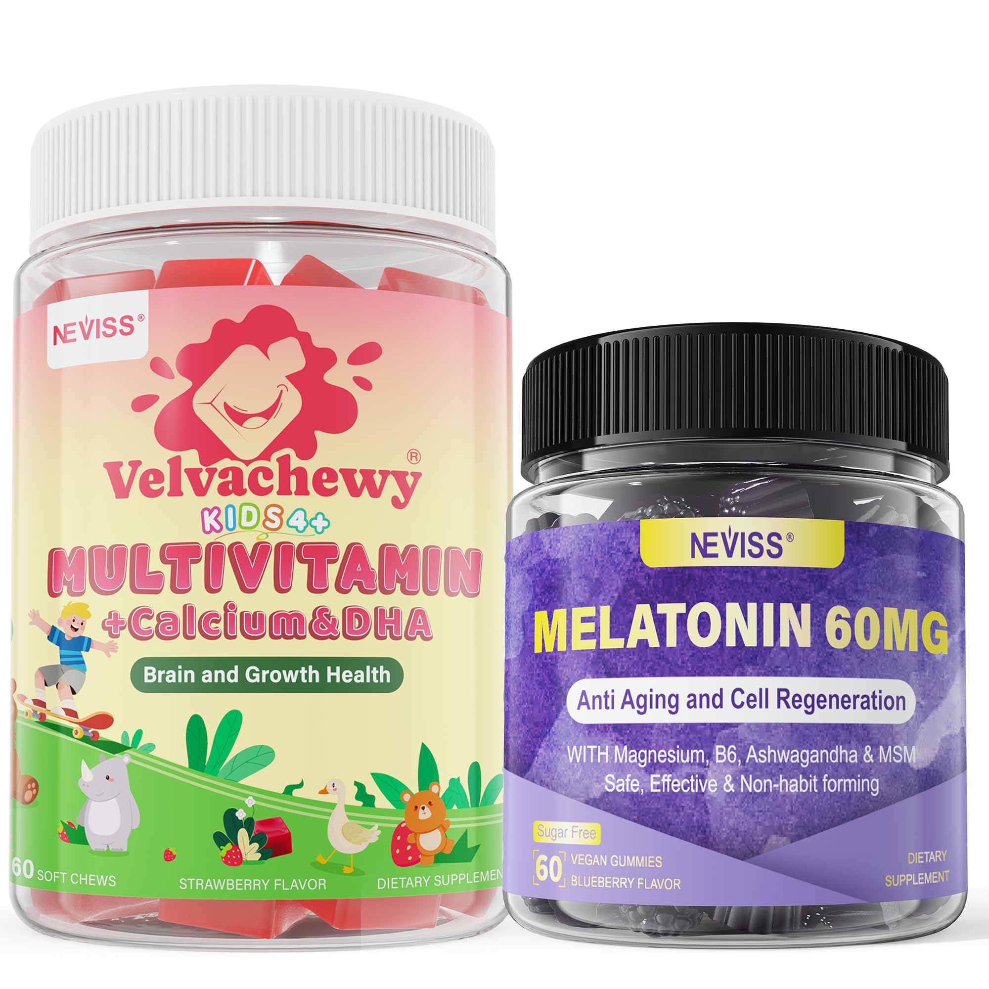 NEVISS Melatonin Gummies 60mg + Kids Multivitamin Soft Chews