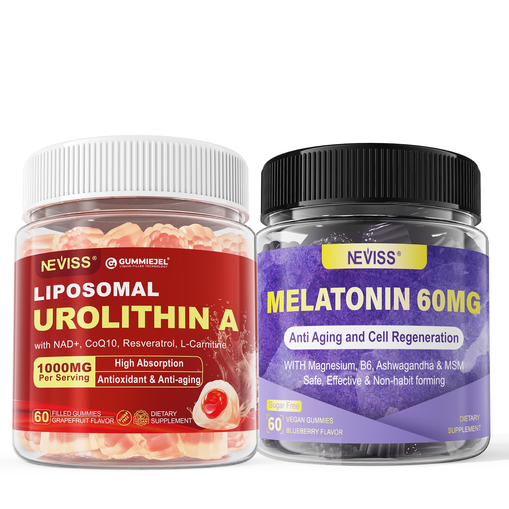 NEVISS Melatonin Gummies 60mg + Urolithin A 1000mg Gummies