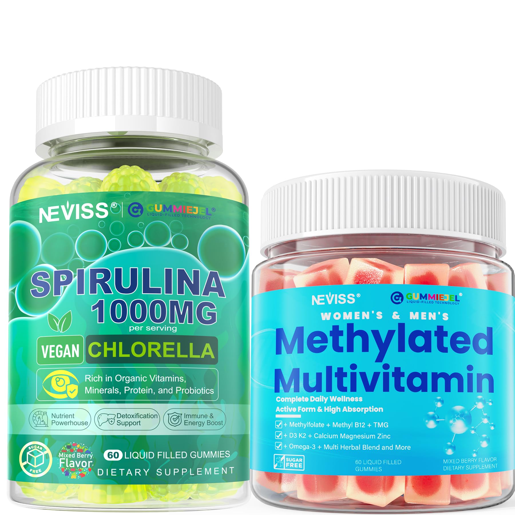 NEVISS Methylated Multivitamin Organic Spirulina & Chlorella Gummies 2Pack