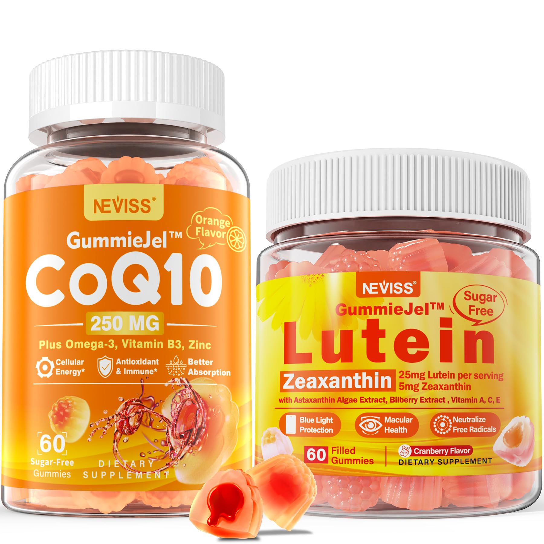 NEVISS Sugar-Free CoQ10 Gummies 60 Count + Lutein Gummies 60 Count