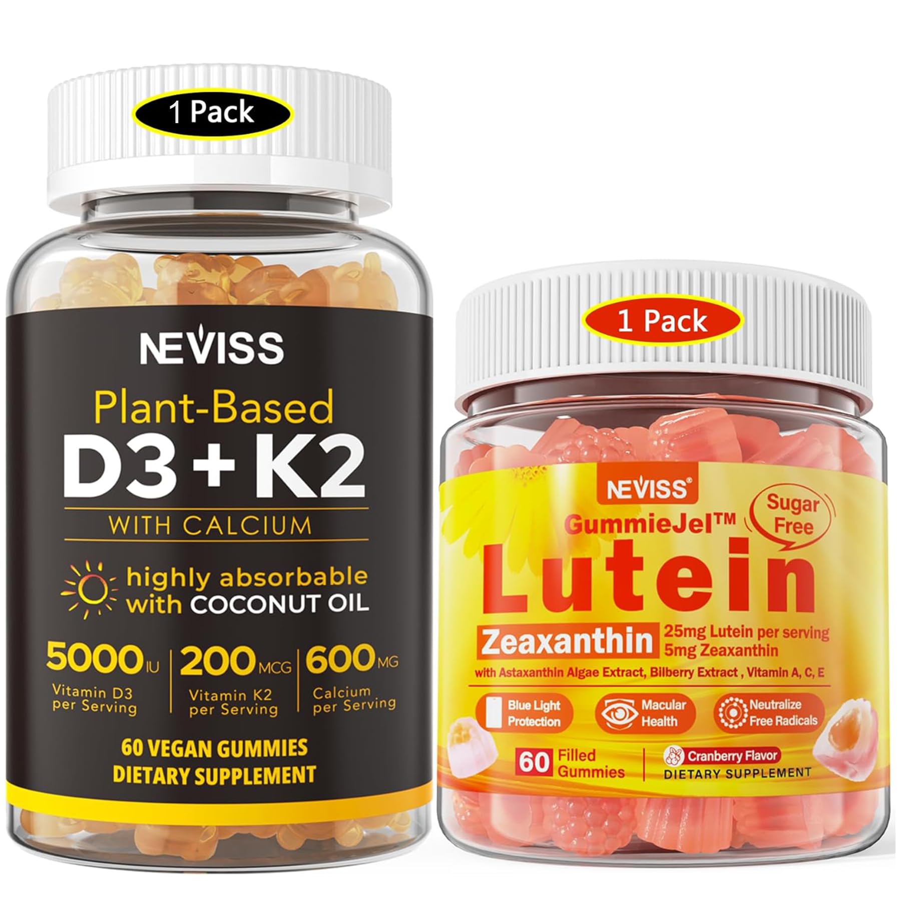 NEVISS Sugar Free Lutein Gummies 60 Counts + Vitamin D3 Gummies 60 Counts