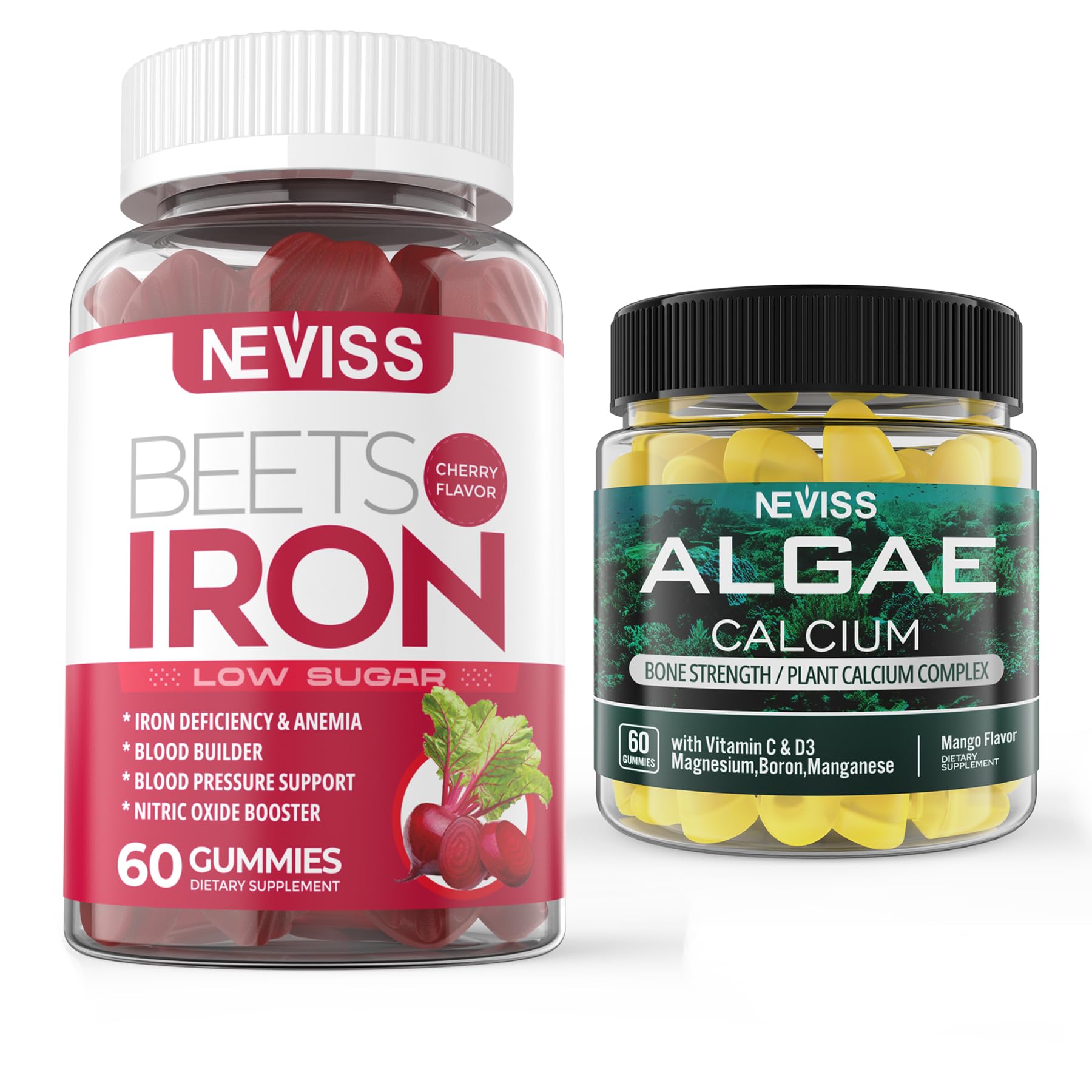 NEVISS Vegan Iron Gummies + Marine Algae Calcium Gummies Bundle