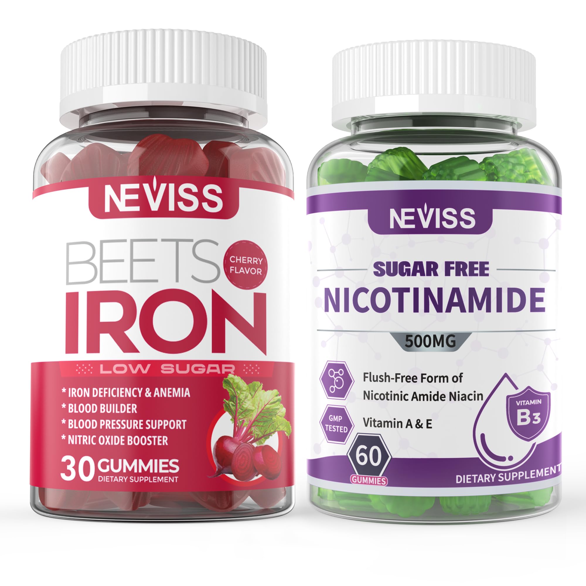 NEVISS Vegan Iron Supplement, Gentl Iron Sugar Free Nicotinamide 500mg Gummies,