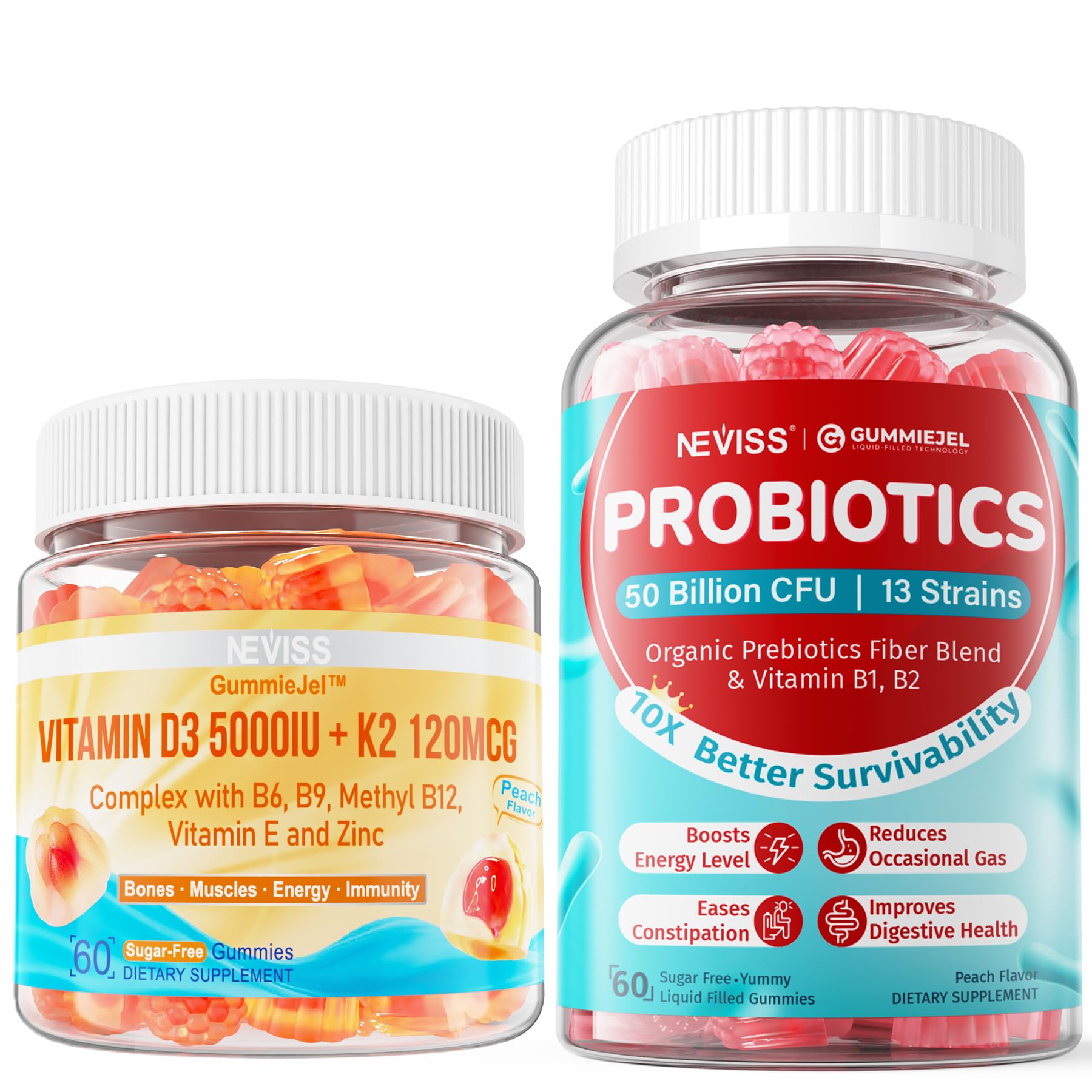 NEVISS Vitamin D3 K2 Gummies +Sugar Free Probiotics Gummies
