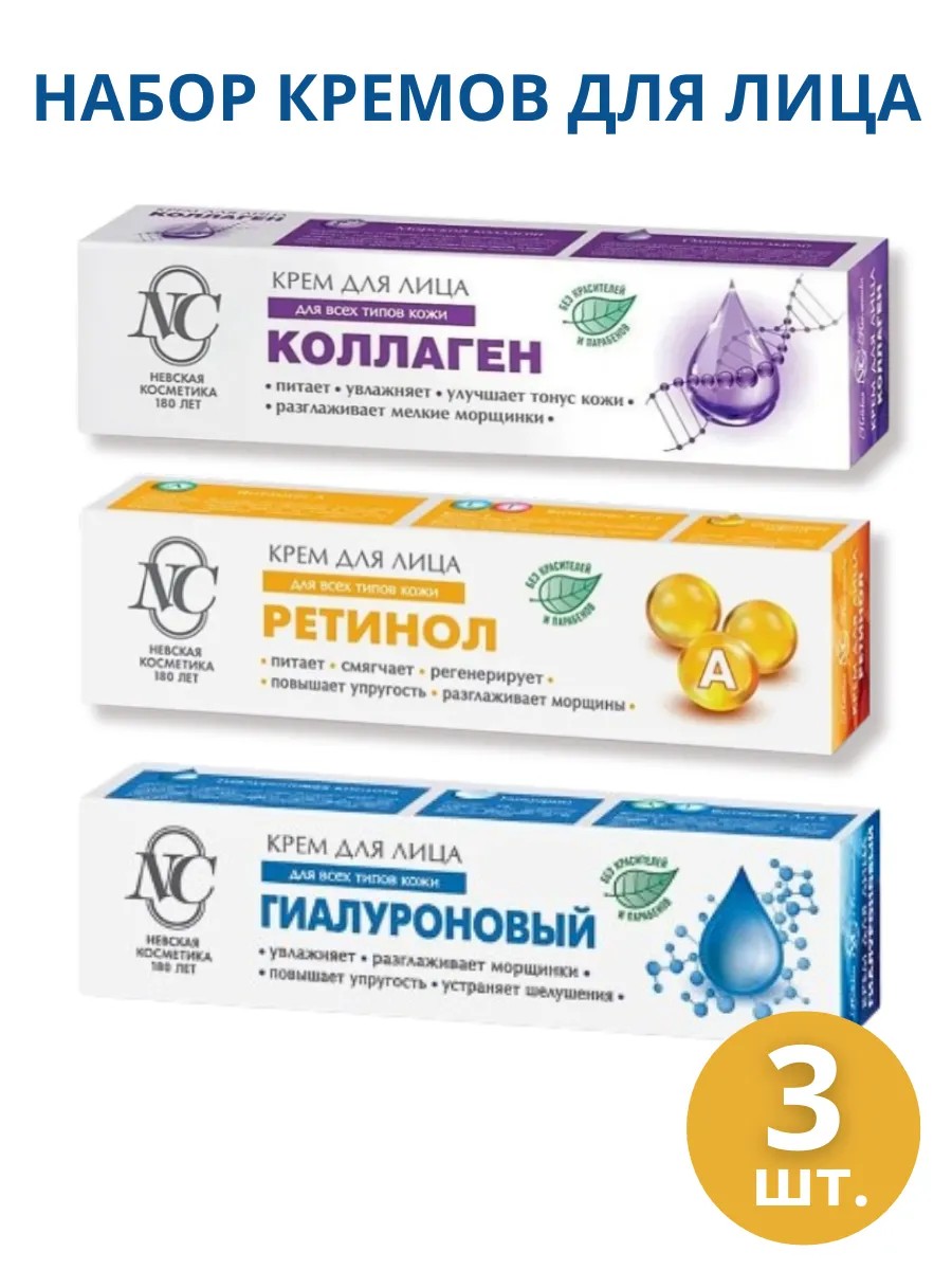 Невская Косметика Крем Коллаген + Ретинол + Гиалуроновый, 3 шт по 40 мл
