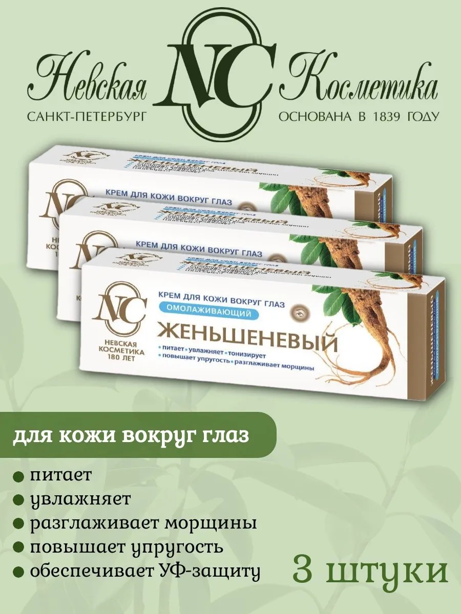 Невская Косметика Крем д/лица ЖЕНЬШЕНЕВЫЙ крем в/глаз х 3 шт