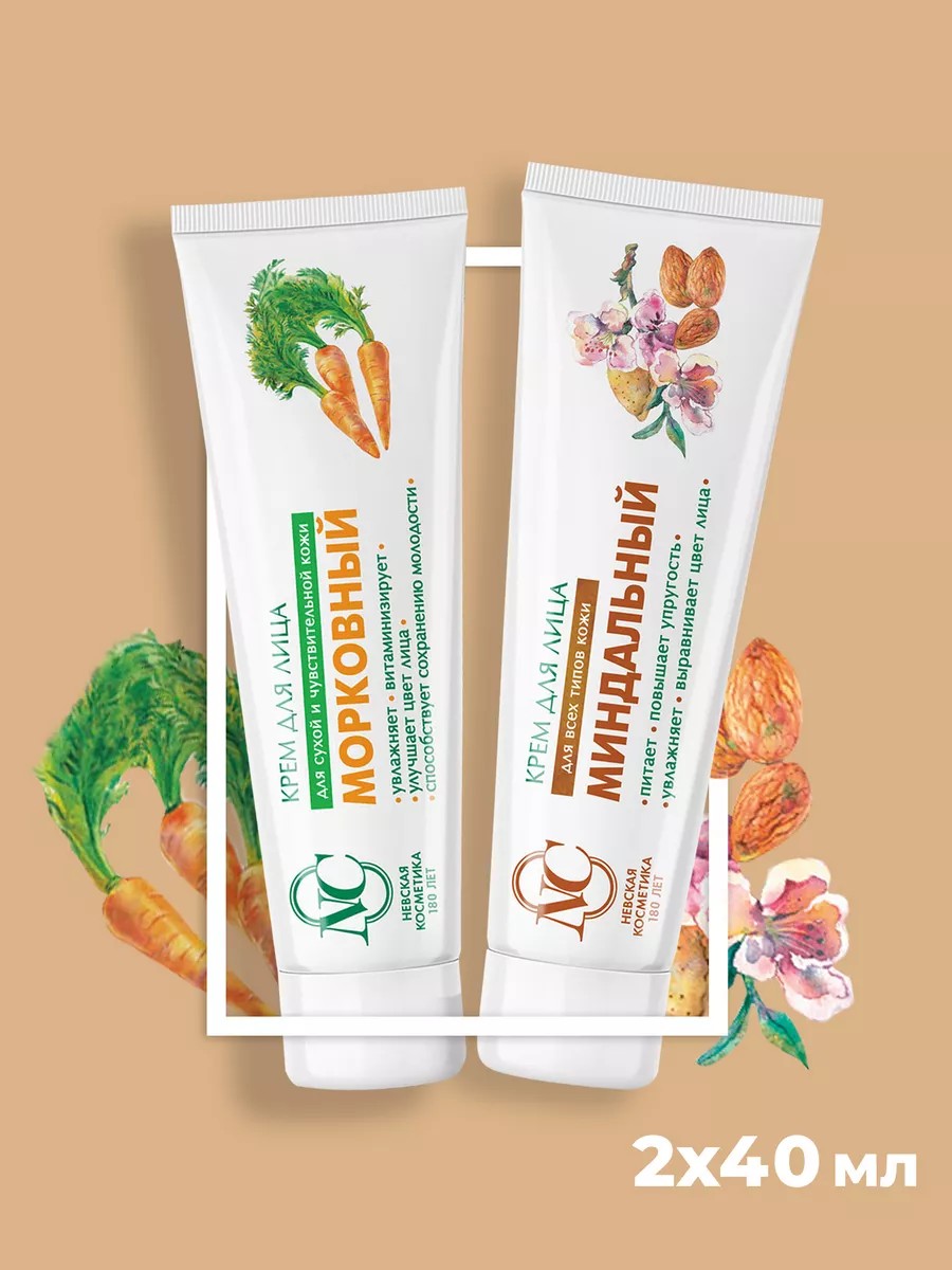 Невская Косметика Крем для лица морковный 40мл и миндальный 40мл-2шт