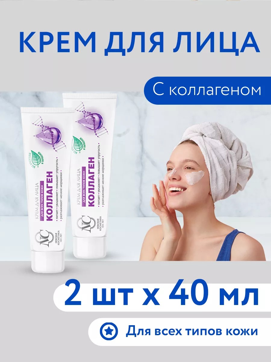 Крем для лица Невская Косметика Коллаген, 40 мл, 2 упаковки в комплекте.