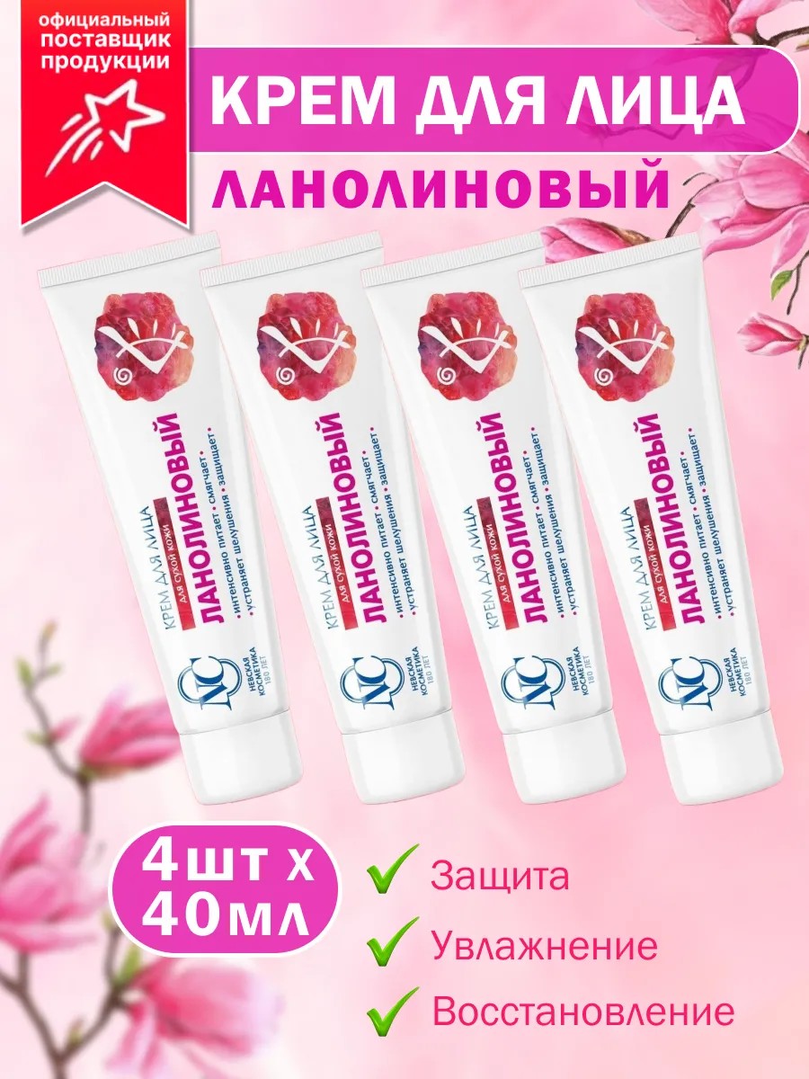 Невская Косметика Крем для лица Ланолиновый увлажняющий 4 шт 40 мл