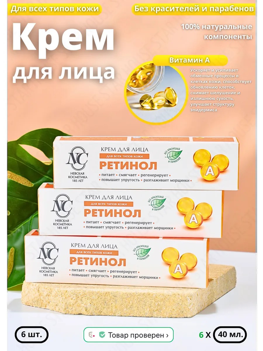 Невская Косметика Крем для лица увлажняющий Ретинол, 40 мл 6 шт.