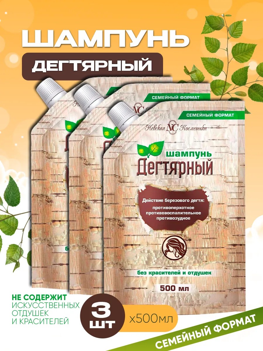Невская Косметика Шампунь для волос Дегтярный от перхоти 3шт х 500мл