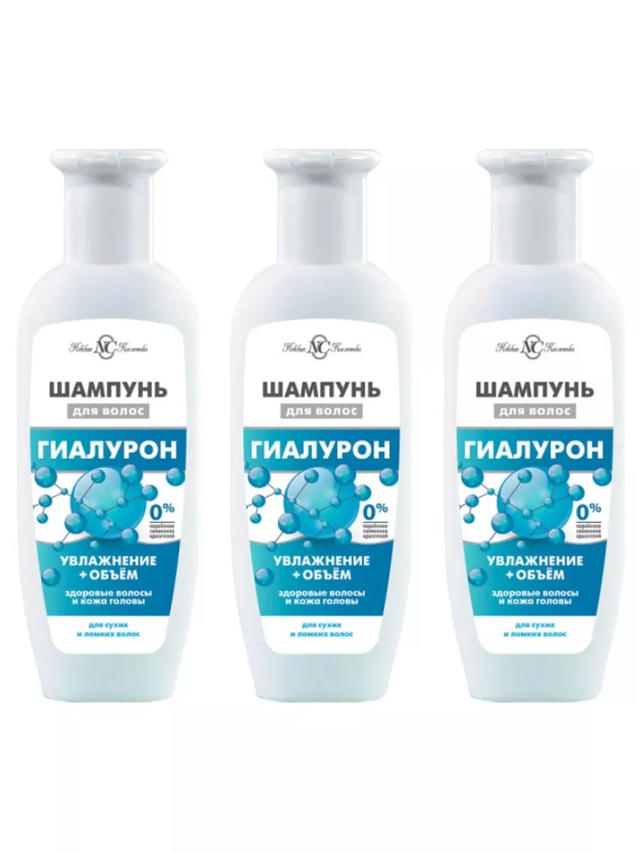 Гиалурон Шампунь 250 мл. Гиалуронат натрия нормализует водный баланс волос и кожи головы. Способствует увлажнению волос и кожи головы, возвращает волосам здоровый и ухоженный вид, мягко очищает, не раздражая кожу головы, имеет естественный рН, подходит для сухих, тонких и ломких волос, подходит для ежедневного применения, 0% парабенов, силиконов, красителей. Активные компоненты: Гиалуроновая кислота- проникает в глубокие слои кожи, увлажняет, питает кожу изнутри, стимулирует синтез коллагена и эластина, подтягивает кожу, сокращает количество мелких морщин, стимулирует заживление и восстановление кожи после повреждений. Polyquaternium-10 - катионный полимер, кондиционирующая добавка, придает объём, облегчает расчесывание, делает волосы более послушными и мягкими. Д-пантенол (провитамин В5) обладает противовоспалительным действием, предотвращает и устраняет появление трещинок и раздражений, сохраняя кожу гладкой, мягкой и увлажненной. Шампунь для волос Гиалурон. Увлажняющий Шампунь Мягко очищает, питает и увлажняет. Активные компоненты шампуня, содержащие питательные вещества, улучшают структуру. В комплекте 3 штуки.