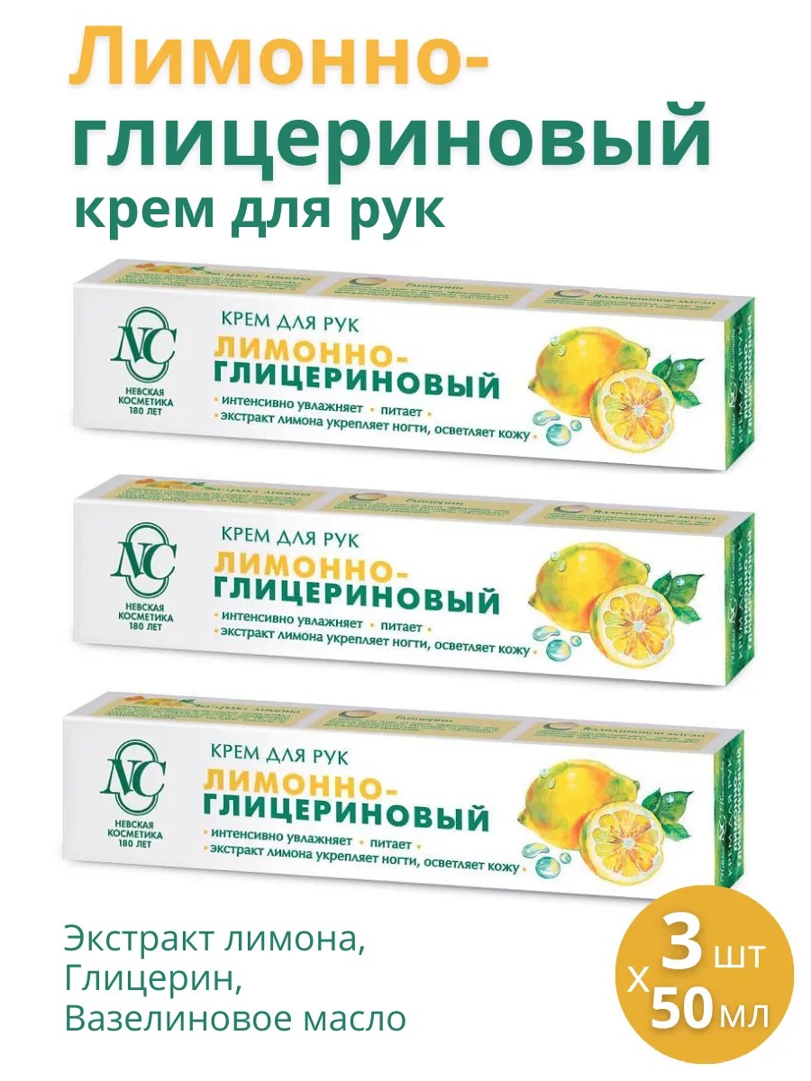 Невская Косметика Крем для рук "Лимонно-глицериновый", набор 3шт по 50мл