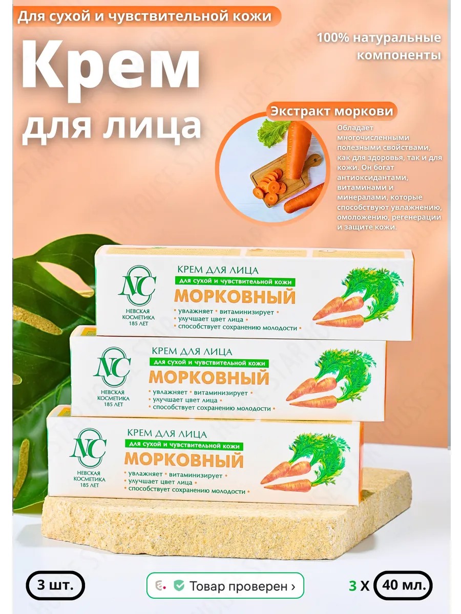 Невская Косметика Крем для лица увлажняющий Морковный, 40 мл 3 шт.