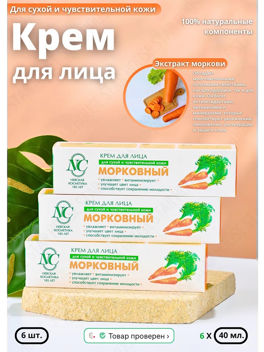 Невская Косметика Крем для лица увлажняющий Морковный, 40 мл 6 шт.