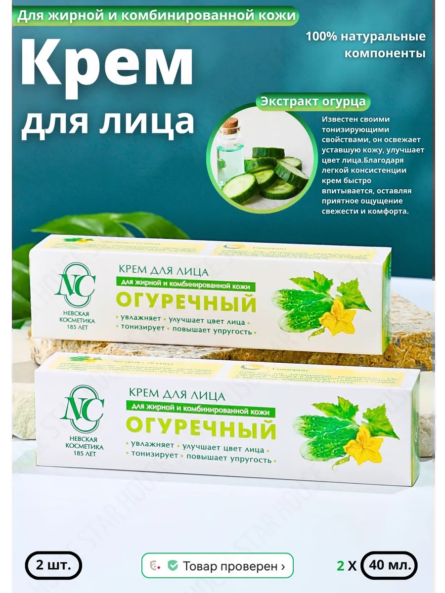 Невская Косметика Крем для лица увлажняющий Огуречный, 40 мл 2 шт.