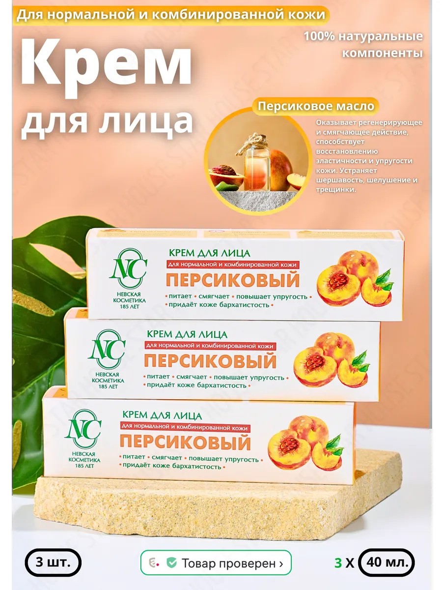 Невская Косметика Крем для лица увлажняющий Персиковый, 40 мл 3 шт.