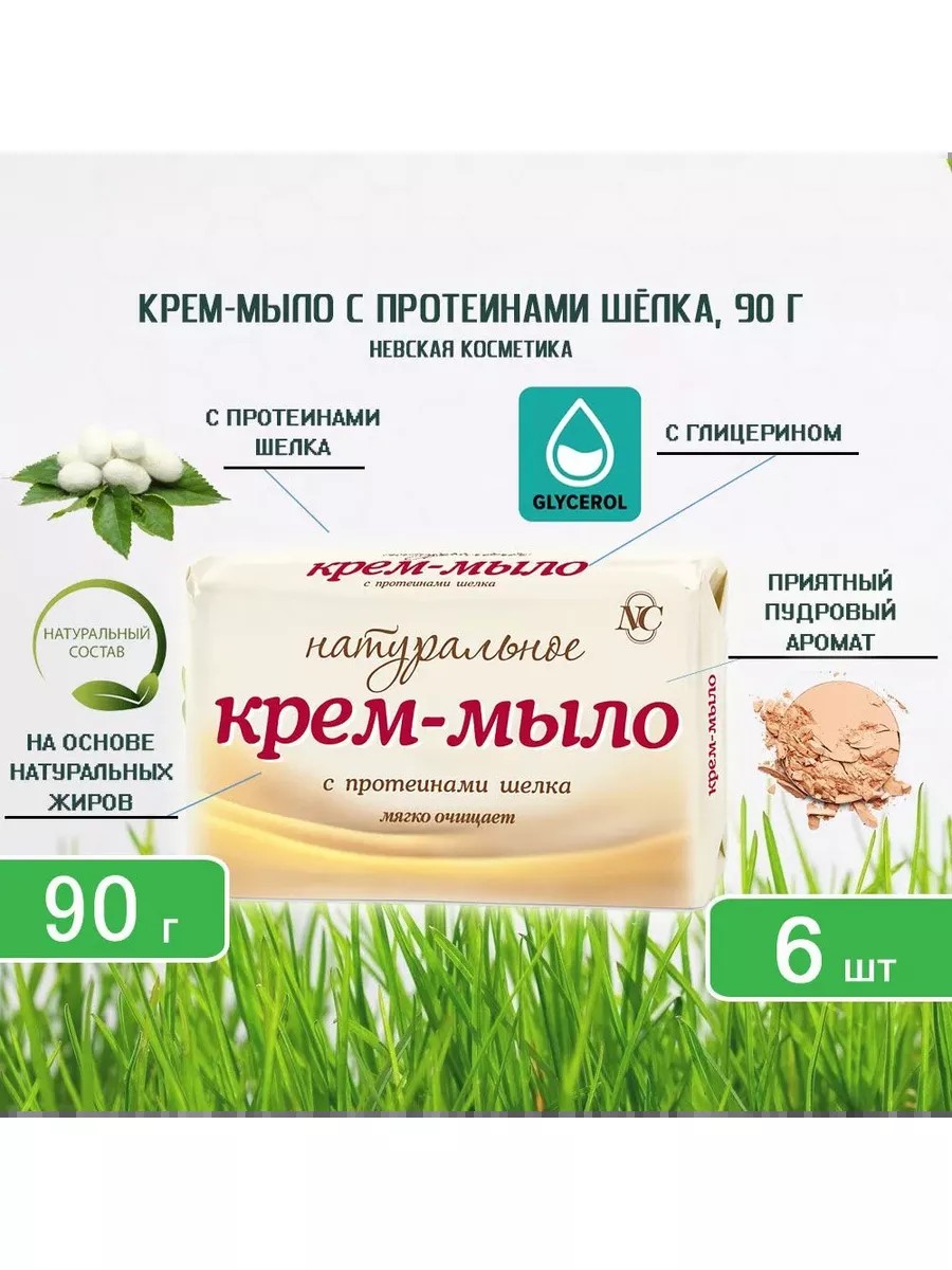 Невская Косметика Крем-мыло Натуральное с протеинами Шелка, 90 г-6шт