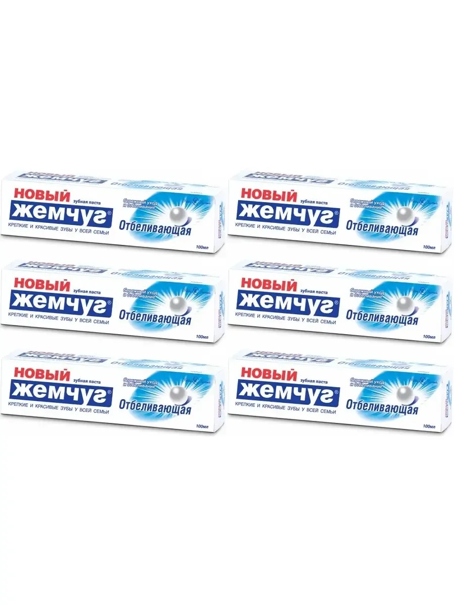 НК Жемчуг Новый зубная паста Отбеливающая 6 шт по 100млПредназначена для взрослых и детей с 14 лет. Паста для высокоэффективной очистки, удаления пятен и полировки эмали зубов (препятствует осаждению красящих веществ на поверхности эмали зубов). Возвращает зубам естественную белизну, уменьшает образование зубного камня и защищает от кариеса.Изготовлена на основе кремниевого абразива.Состав средстваAqua, Sorbitol, Hydrated Silica, Sodium Lauryl Sulfate, Xanthan Gum, Tetrapotassium Pyrophosphate, Disodium Pyrophosphate, Sodium Monofluorophosphate, Sodium Saccharin, Aroma, Sodium Benzoate, Potassium Sorbate, Titanium Dioxide, Массовая доля фторида 0,1% (1000 ppm).