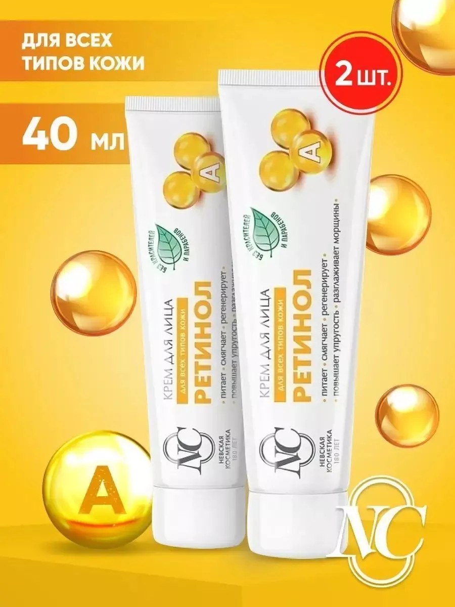 Nevskaya Cosmetics Retinol Face Cream, 40 ml, is suitable for daily care of sensitive and dry skin. It has softening and moisturizing properties and promotes cell renewal. This regenerating cream with retinol is suitable for all skin types and has an anti-aging effect, smoothes wrinkles, and improves skin elasticity. This day cream contains active ingredients such as vitamins A, E, and F, and olive oil, which improve absorption and provide a moisturizing effect. Vitamin A improves cellular metabolism and promotes cell renewal, which leads to the smoothing of wrinkles. Vitamin E is a natural antioxidant. It protects the skin and helps retain moisture within cells, preventing flaking. Vitamin F enhances the regenerative properties of the epidermis and promotes skin hydration. Olive oil additionally softens and nourishes the epidermis to prevent flaking. This retinol face cream is free of chemical fragrances and harmful ingredients, making it a universal product for all skin types. Nevskaya Cosmetics' retinol cream for dry skin is sold in a tube, making this Russian skincare product easy to use. Ingredients: Aqua, Isopropyl Myristate, Olea Europaea (Olive) Oil, Glyceryl Stearate, Glycerin, Paraffinum Liquidum, Ceteareth-12, Cetearyl Alcohol, Cyclopentasiloxane, Retinyl Palmitate, Tocopheryl Acetate, Linoleic Acid, Carbomer, Parfum, Triethanolamine, Phenoxyethanol, Ethylhexylglycerin.