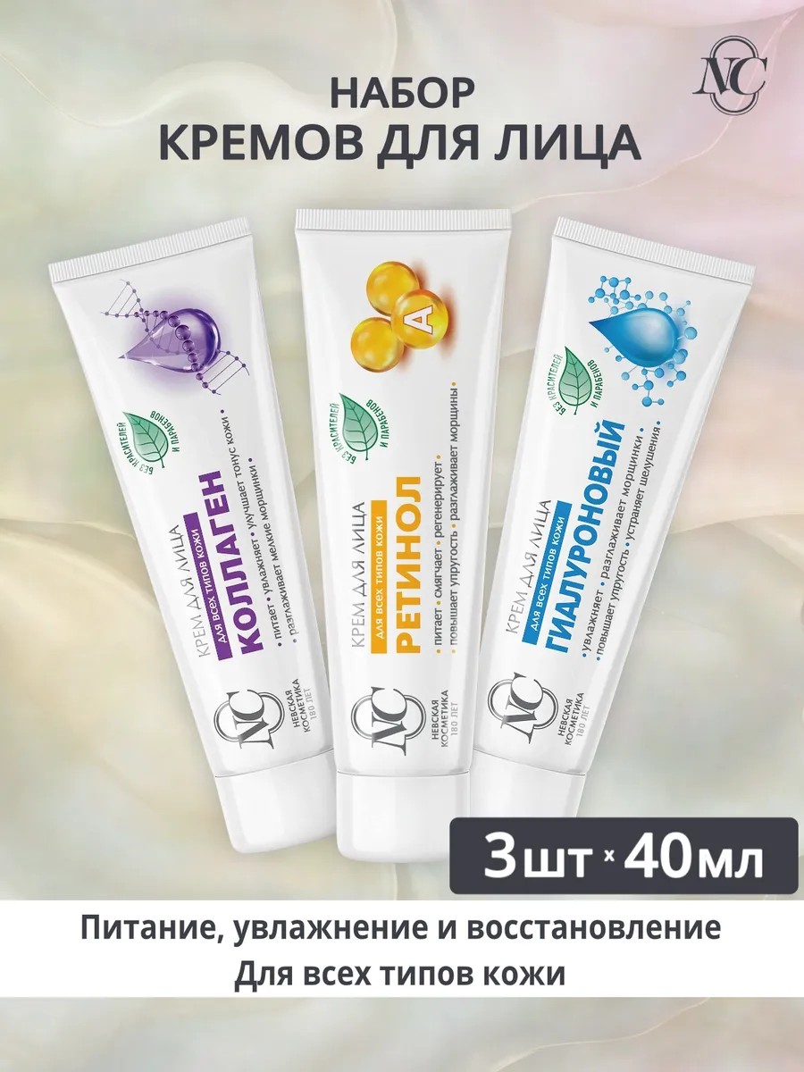 A set of creams from the Nevskaya Cosmetics factory - Collagen, Retinol and Hyaluronic.