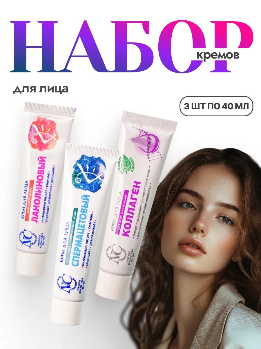 | Комплектация | Крем для лица «Невская Косметика Коллаген» - 1 шт.; Крем для лица «Невская Косметика Ланолиновый» - 1 шт.; Крем для лица «Невская Косметика Спермацетовый» - 1 шт. |