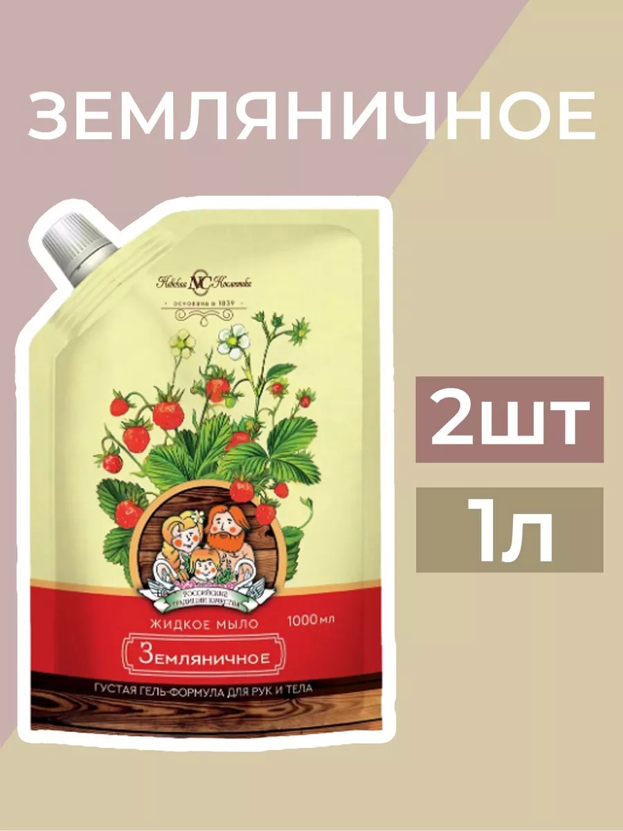 Nevskaya Cosmetics Strawberry Liquid Toilet Soap. Designed for gentle yet effective cleansing. Gentle on skin, it doesn't irritate. Its natural pH makes it suitable for all skin types. It doesn't leave your skin feeling dry or tight. Its thick formula creates a rich, lush lather and is economical to use. Convenient, soft doy-pack packaging. This liquid soap is suitable for daily use by the whole family. It does not contain parabens, silicones, dyes, or alkali. Package includes: 2 1-liter bottles.