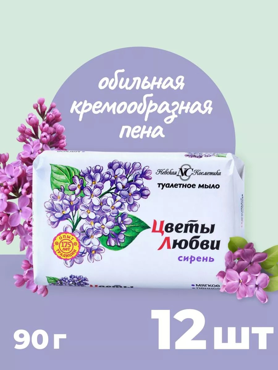 Туалетное мыло Невская косметика Цветы любви. Бережно очищает без ощущения сухости и стянутости. Экономично в применении, не рассыхается и не трескается в мыльнице. Образует мягкую, обильную пену даже в жесткой и холодной воде. Содержит глицерин - один из самых эффективных натуральных увлажнителей, защищает кожу от потери естественной влаги, обеспечивает смягчение. Подходит для ежедневного использования всей семьей. В производстве используются современные парфюмерные композиции, обладает приятным ароматом сирени.