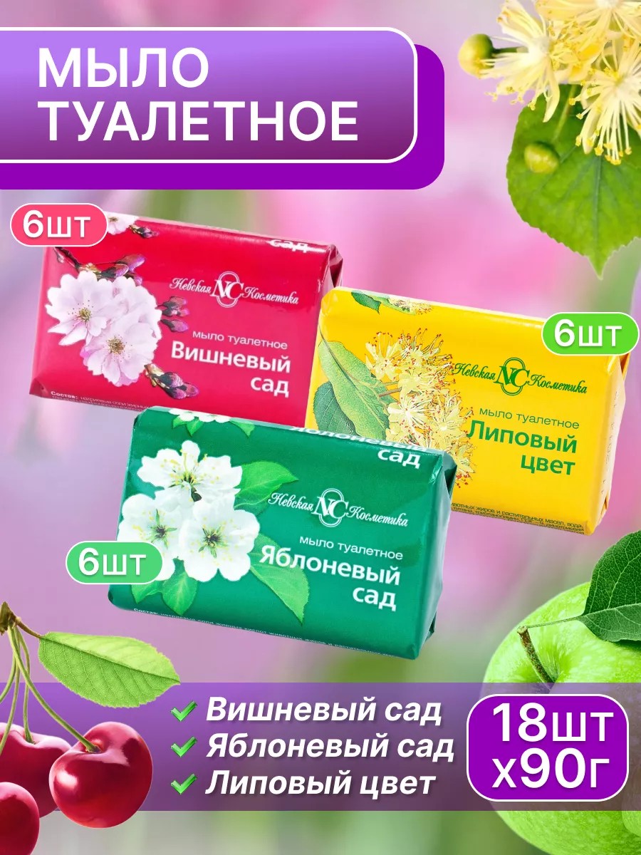 Natural cosmetic bar soaps "Linden Blossom," "Apple Orchard," and "Cherry Orchard" from the Russian company "Nevskaya Kosmetika" are designed for gentle skin cleansing. This soap ensures perfect cleanliness and keeps the skin soft without causing irritation, and has an antibacterial effect.