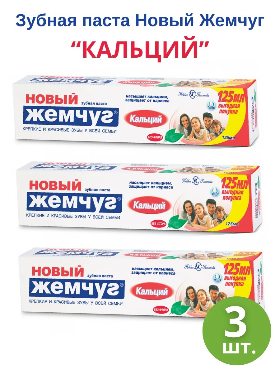 Откройте для себя заботу о здоровье вашей улыбки с набором зубных паст Новый Жемчуг с кальцием, созданным специально для всей семьи.