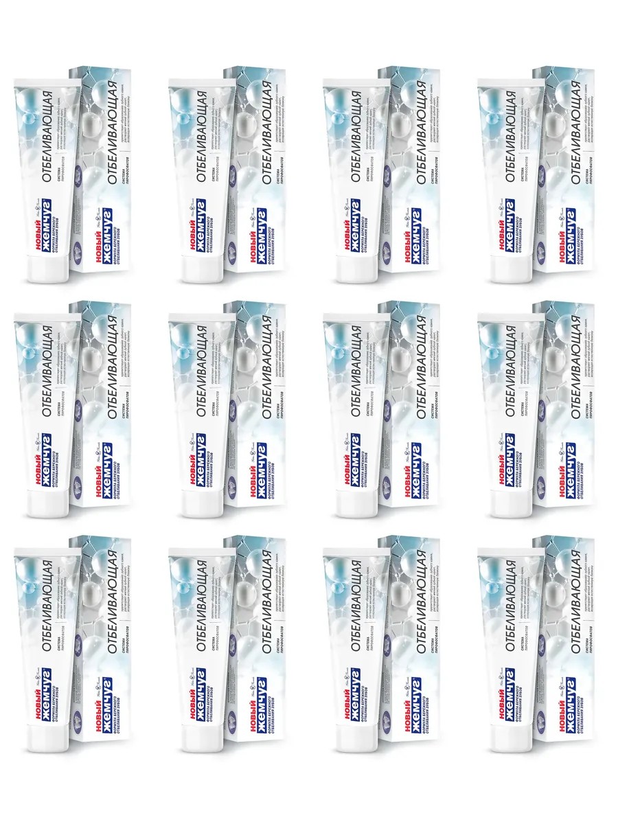 НК Жемчуг Новый зубная паста Отбеливающая 12 шт по 100млПредназначена для взрослых и детей с 14 лет. Паста для высокоэффективной очистки, удаления пятен и полировки эмали зубов (препятствует осаждению красящих веществ на поверхности эмали зубов). Возвращает зубам естественную белизну, уменьшает образование зубного камня и защищает от кариеса.Изготовлена на основе кремниевого абразива.Состав средстваAqua, Sorbitol, Hydrated Silica, Sodium Lauryl Sulfate, Xanthan Gum, Tetrapotassium Pyrophosphate, Disodium Pyrophosphate, Sodium Monofluorophosphate, Sodium Saccharin, Aroma, Sodium Benzoate, Potassium Sorbate, Titanium Dioxide, Массовая доля фторида 0,1% (1000 ppm).
