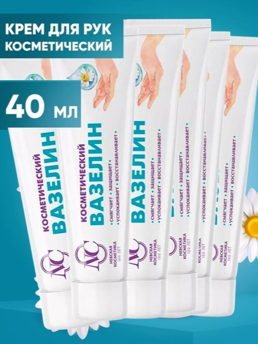 Nevskaya Cosmetics' Vaseline is designed for hand, face, and body care at any time of day. This cosmetic Vaseline is made from natural ingredients and does not contain any harmful ingredients. It is suitable for moisturizing cuticles after a manicure, protecting skin from aggressive environmental influences, and for healing lips and eyebrows after tattooing. Chamomile extract in this hand Vaseline has anti-inflammatory, antiseptic, and soothing properties, accelerates cell regeneration, and relieves irritation, itching, and redness. Vaseline oil in this moisturizer is a neutral, highly purified mineral oil with emollient and water-repellent properties. Vaseline oil helps retain moisture in the skin, prevents dehydration, and improves epidermal elasticity. Using Vaseline on lips leaves skin soft, smooth, and supple. Flaking, itching, and redness will disappear. Vaseline for hands can be used to prevent chapped hands. This moisturizing cream softens dry skin on your heels, elbows, and around your nails. Vaseline for hands is hypoallergenic and won't irritate even the most sensitive skin. It makes an ideal gift for mom, grandma, or friend. Vaseline for lips is recommended for treating chapped lips, abrasions, and burns. It's especially helpful during the summer season. Nevskaya Cosmetics Vaseline should be applied in a thin layer to dry skin on your hands, face, and body as needed. Suitable for daily use.