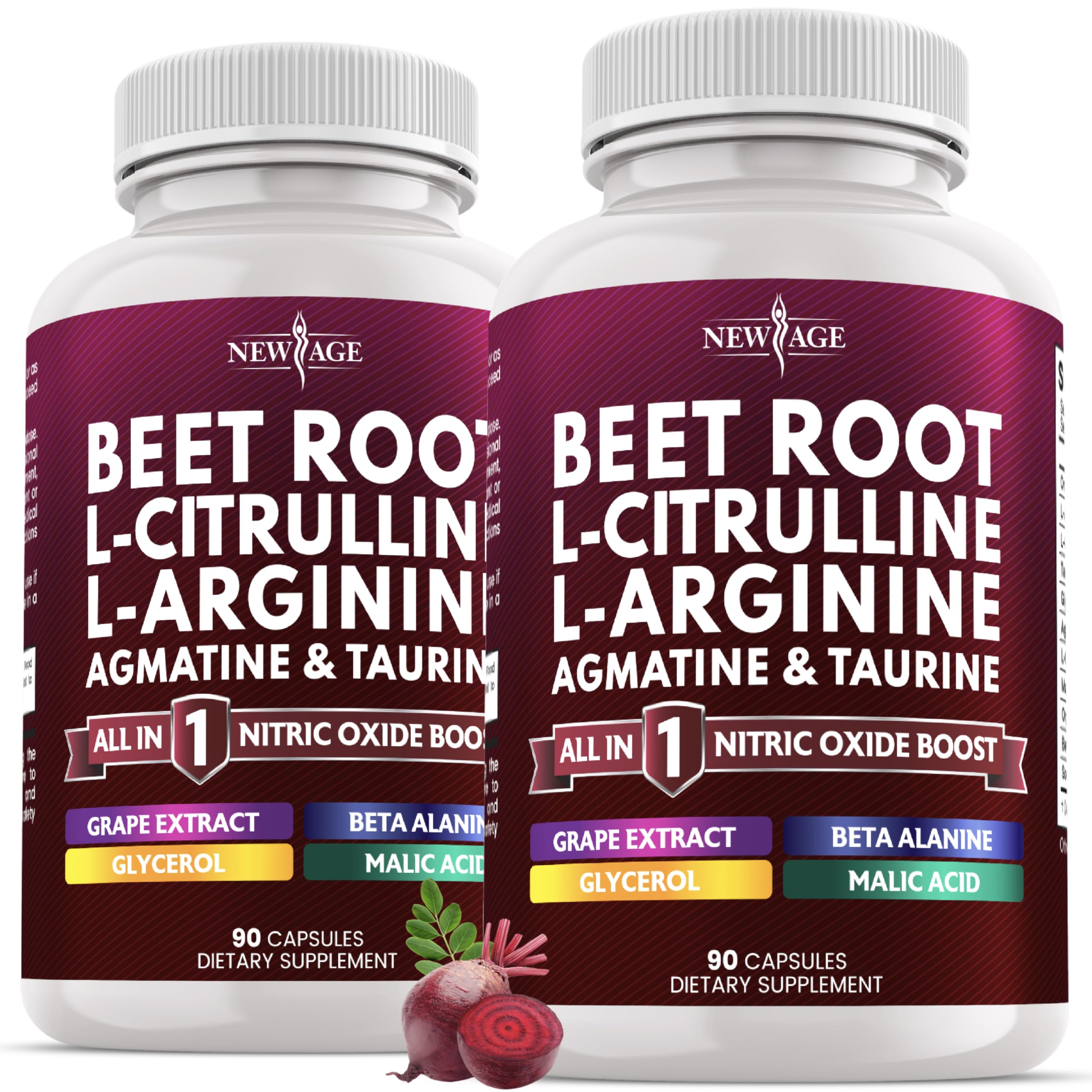 NEW AGE Beet Root Capsules - L Arginine, L Citrulline, Nitric Oxide, Beetroot Powder, Arginine, Citrulline Supplement 180 Vegan Capsules 90 Count (Pack of 2)