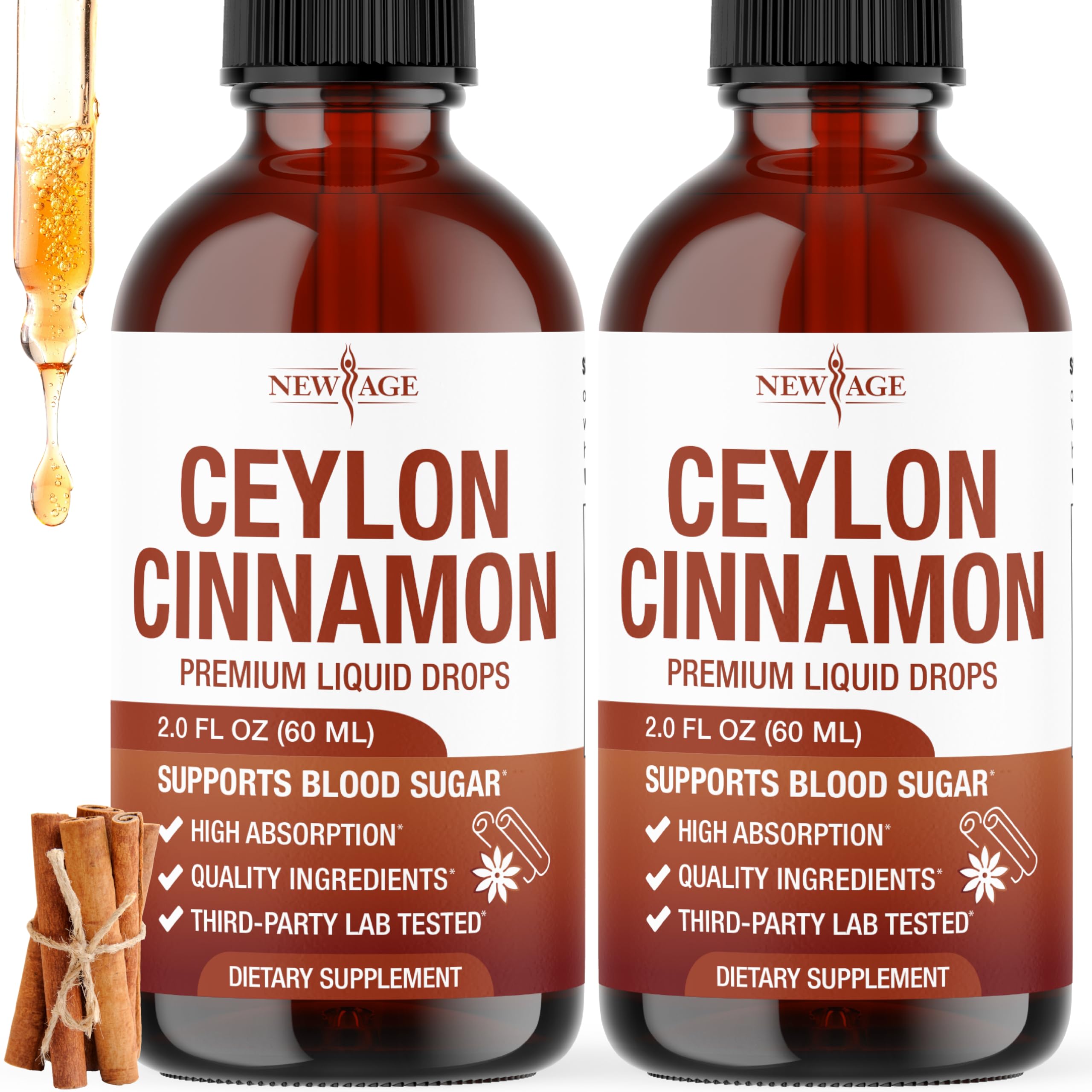 QUALITY YOU CAN TRUST – Manufactured in the USA in a GMP-certified and third-party tested facility to ensure safety, purity, and potency. New Age delivers supplements backed by science and uncompromising quality standards. . PURE, CLEAN NATURALLY SOURCED – New Age Ceylon Cinnamon Drops are vegan, non-GMO, and gluten-free—made without artificial colors, flavors, or preservatives. You get only pure, naturally sourced cinnamon extract in every drop. . FAST-ACTING LIQUID FORMULA – Our high-absorption drops work faster than capsules or tablets. Simply take 1–2 ml daily directly or mix into your favorite drink for an easy, effective way to support your daily wellness routine. . SUPPORTS HEALTHY A METABOLISM – Ceylon cinnamon may helps the body maintain normal metabolism, aiding energy regulation and balanced vitality throughout the day. . CEYLON CINNAMON EXTRACT – Crafted from Cinnamomum verum, the "true" Ceylon cinnamon known for its purity and mild flavor. Each serving delivers potent natural compounds to support balance, heart health, and metabolic wellness. .