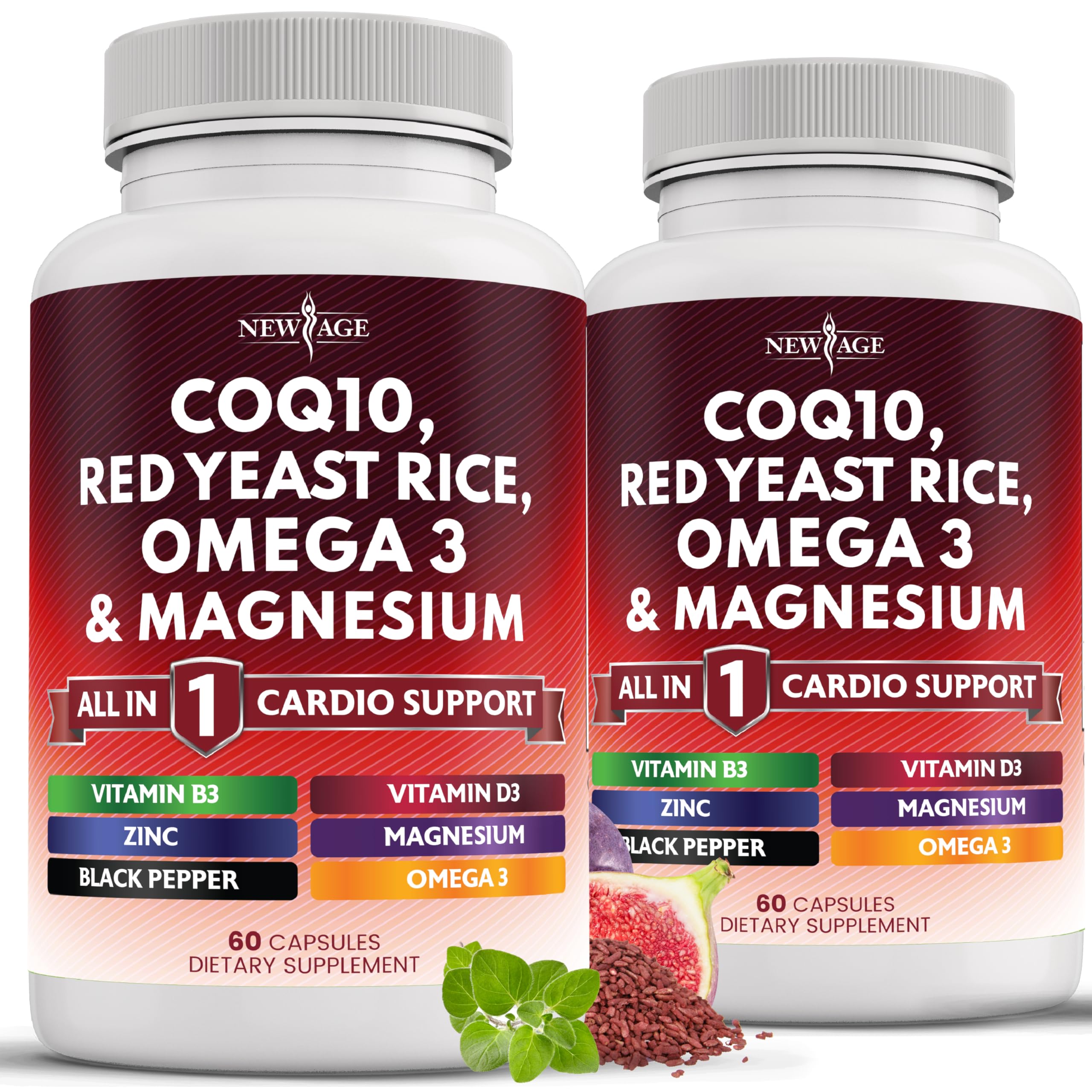 NEW AGE COQ10 200mg Red Yeast Rice 3000mg Omega 3-6-9 3000mg Magnesium Complex 500mg Zinc Vitamin K2 D3 - Vitamins for Women and Men with Vitamin B3 Coenzyme Q10-120 Count 120 Capsules (Pack of 2)