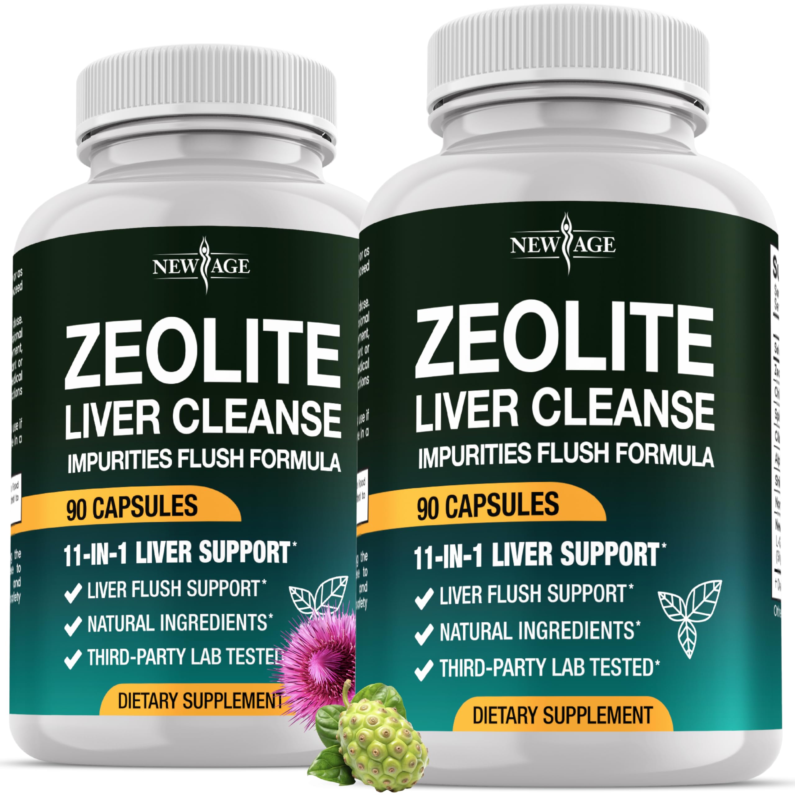 NEW AGE Liver Cleanse & Repair - Gut Health, and Energy - Zeolite for Adults with Noni, Glutathione, NAC, Chlorella, Spirulina, ALA, Cilantro, Milk Thistle & Shilajit - 180 Count 90 Count (Pack of 2)