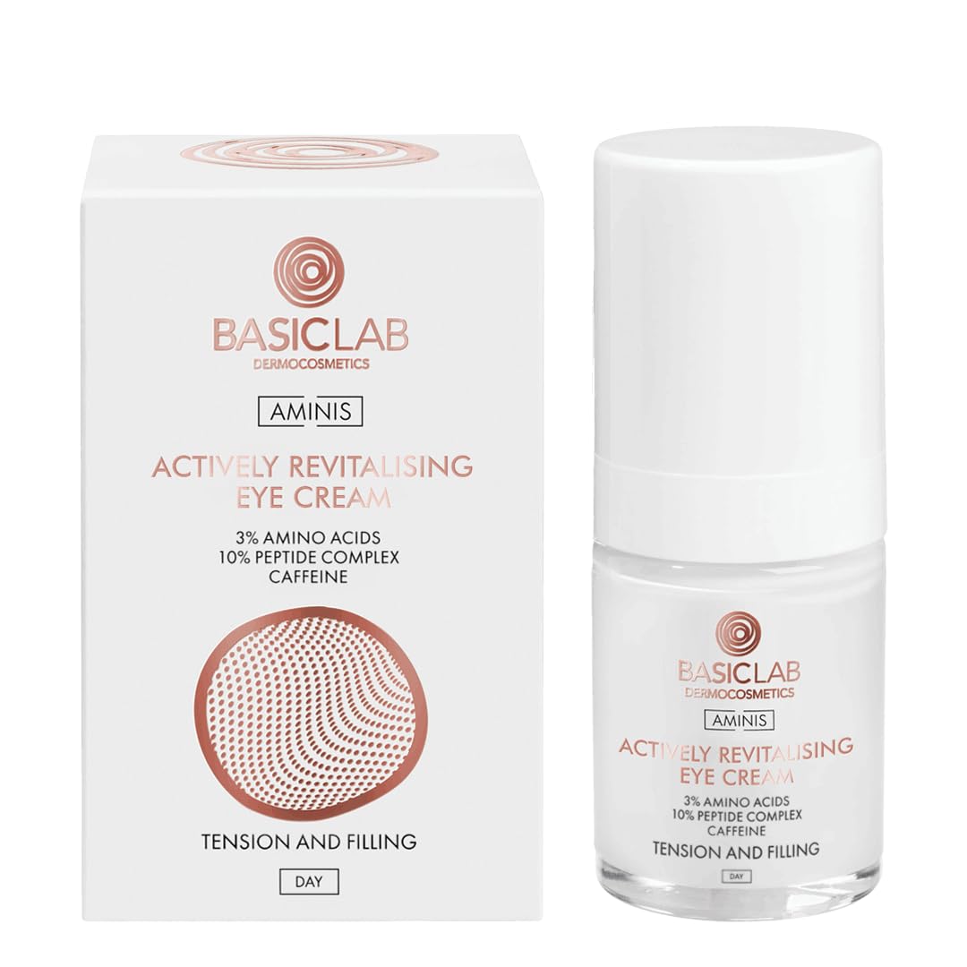 The active revitalizing eye and eye cream with a high content of amino acids and peptides gradually reduces the visible signs of skin aging, intensively moisturizes and soothes sensitive skin. Thanks to its ingredients that stimulate microcirculation, it effectively lightens dark circles and reduces puffiness under the eyes, so that the skin looks more relaxed and younger. The formula with light plasticizers and stable vitamin C perfectly nourishes and firms the skin and reduces the tendency to wrinkles. SAFETY WARNING notBASICLAB Dermocosmetics - a brand created from experience in the pharmaceutical and cosmetic industry. The company's mission is to restore confidence in the effectiveness of cosmetics. Use: gently pat a small amount of cream into the eyes and eyelids with your fingertips. Can be used alone or as part of a layering treatment over an eye serum. Use during the day. ACTIVITY: 3 amino acids ensure appropriate moisture content and plasticity of the epidermis. The 10 tetrapeptide-5 complex reduces the tendency to dark circles and puffiness. Vitamin C revitalizes and strengthens the skin. RESULTS: Reduces the appearance of dark circles and bags under the eyes. Reduces fine lines and wrinkles on the face and reduces the tendency to form new wrinkles. Provides intensive and deep moisture. Suitable for skin with visible signs of aging, all types, sensitive skin, with visible wrinkles on the face, dark circles around the eyes and swelling under the eyes.BasicLab DermocosmeticsBasicLab Anti-rimpel oog- en ooglidcrème, 18 ml, anti-aging crème, voor de rijpe huid, tegen rimpels De actieve revitaliserende oog- en oogcrème met een hoog gehalte aan aminozuren en peptiden vermindert geleidelijk de zichtbare tekenen van huidveroudering, hydrateert intensief en kalmeert de gevoelige huid. Dankzij de ingrediënten die de microcirculatie stimuleren, maakt het donkere kringen effectief lichter en vermindert het zwellingen onder de ogen, zodat de huid er meer ontspannen en jonger uitziet. De formule met lichte weekmakers en stabiele vitamine C voedt en verstevigt de huid perfect en vermindert de neiging tot gezichtsrimpels. VEILIGHEIDSWAARSCHUWING nietBASICLAB Dermocosmetics - een merk dat is ontstaan uit ervaring in de farmaceutische en cosmetische industrie. De missie van het bedrijf is om het vertrouwen in de effectiviteit van cosmetica te herstellen. Gebruik: een kleine hoeveelheid crème met de vingertoppen zachtjes in de ogen en de oogleden kloppen. Kan alleen of als onderdeel van een laagbehandeling boven een oogserum worden gebruikt. Overdag gebruiken. ACTIVITEIT: 3 aminozuren zorgen voor een passend vochtgehalte en de plasticiteit van de epidermis. Het 10 tetrapeptide-5-complex vermindert de neiging tot donkere kringen en zwellingen. Vitamine C revitaliseert en versterkt de huid. RESULTATEN: vermindert het verschijnen van donkere kringen en wallen onder de ogen. Vermindert fijne lijntjes en rimpels in het gezicht en vermindert de neiging om nieuwe rimpels te vormen. Geeft intensief en diep vocht. Geschikt voor huid met zichtbare tekenen van huidveroudering, alle types, gevoelige huid, met zichtbare rimpels in het gezicht, donkere kringen rond de ogen en zwellingen onder de ogen.