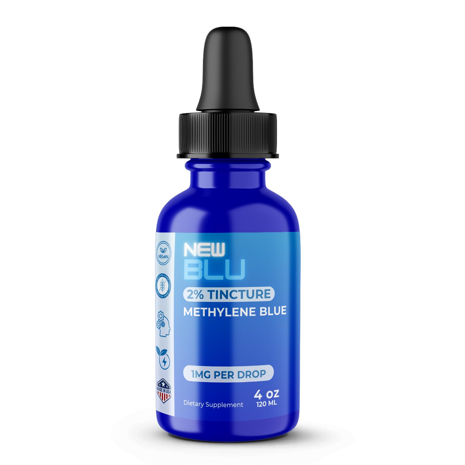 Unlock peak mental performance with our USP-grade, formaldehyde-free methylene blue tincture, crafted in a GMP-compliant, FDA-registered facility for maximum purity potency. This 2 solution fuels brain function, energy, and cognitive clarity at the cellular level—enhancing focus, endurance, and mitochondrial health without the blue mouth stains! ✓ USP-Grade Formaldehyde-Free – Pure safe for optimal effectiveness ✓ Made in the USA – GMP-compliant FDA-registered facility ✓ Supports Mental Clarity Focus – Enhances oxygen utilization brain energy ✓ No Mess, No Stains – Easy-to-use liquid formula with precise dosing Upgrade Your Brainpower Discover the power of New Blue's 2 Methylene Blue Tincture, a premium 4oz (120ml) solution crafted for optimal cognitive enhancement. This meticulously formulated blend combines pure reverse osmosis water with pharmaceutical-grade methylene blue in a convenient dropper bottle. The tincture is designed to support mental clarity, boost energy levels, and enhance cellular function. Whether you're looking to sharpen your focus, increase cognitive endurance, or optimize your mitochondrial performance, this concentrated formula delivers consistent results. The liquid format ensures precise dosing and easy integration into your daily routine. Each bottle contains a carefully balanced 2 concentration, making it an ideal choice for those seeking to elevate their mental and physical performance. Experience the difference with this innovative tincture that works at the cellular level to support your body's natural energy production and cognitive functions.