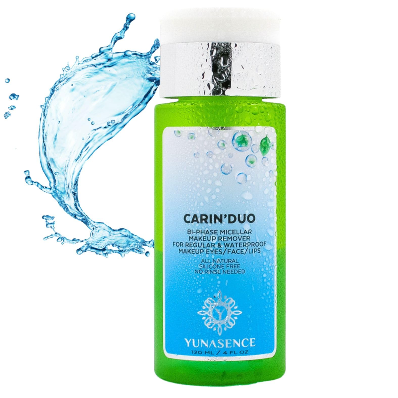 : Carin' Duo is an all-natural, silicone-free, two-phase cleanser that effortlessly removes even the most stubborn, even waterproof, makeup. It's soothing, refreshing, and gentle on the skin. This multi-purpose cleanser features micellar technology. Like a magnet, the micelles capture and remove dirt, oil, and makeup without aggressive rubbing, while revitalizing and refreshing the delicate eye area and leaving skin perfectly clean and soft without any oily residue. It's alcohol-free, fragrance-free, and silicone-free. Often, the makeup remover will arrive with a foamy consistency due to shaking during shipping. This is normal, and if the bottle is left to settle for 24 to 48 hours, the contents will return to their normal state, which is separated into two parts (two phases): an oil phase and a water phase. Ingredients: Water (Aqua), C15-19 alkaline, coco-caprylate caprate esters, Simmondsia chinensis (Jojoba) oil, olive oil, lactobacillus ferment, decyl glucoside, malachite extract, sodium chloride, Prunus domestica (Plum) oil, phenethyl alcohol, panthenol, Chenopodium tincture, Cucucumis sativus (Cucumber) fruit extract, melon fruit extract, Laminaria digitata (Spelt) extractFree from artificial fragrance, dyes, parabens, sulfates, alcohol, mineral oil, and silicone. Results: soft, clean, and comfortable skin with a refreshing effect. Suitable for all skin types, including sensitive skin. Enriched with soothing cucumber and moisturizing kelp. Natural, two-phase, water- and oil-based formula that effectively removes regular and heavy-duty waterproof makeup while strengthening eyelashes.Description du produit Carin' Duo est un nettoyant biphasé entièrement naturel et sans silicone qui élimine sans effort même le maquillage le plus tenace, même étanche. Mais elle est apaisante, rafraîchissante et douce pour la peau. C'est un nettoyant polyvalent qui contient la technologie micellaire. Comme un aimant, les micelles capturent et retirent la saleté, l'huile et le maquillage sans frotter agressivement, tout en revitalisant et rafraîchissant le contour des yeux délicat et laissant la peau parfaitement propre et douce sans aucun résidu gras. Sans alcool, sans parfum artificiel, sans silicone. Souvent, le démaquillant arrivera avec une consistance mousseuse en raison du secouement lors de l'expédition. Ceci est normal et si la bouteille est laissée à s'installer pendant 24 à 48 heures, le contenu revient à son état normal, qui est séparé en deux parties (biphasé) : phase huile et eau. Ingrédients Eau (Aqua), alcaline C15-19, coco-caprylate caprate, esters Simmondsia chinensis (Jojoba), huile d'olive, lactobacillus ferment, decyl glucoside, extrait de malachite, chlorure de sodium, prunus Domestica (prune), alcool phénéthyle, panthénol, chenopodium. t, Cucucumis Sati Vus (concombre), extrait de fruits de cucumis (melo), extrait de fruits de melon, extrait de Laminaria Digitata (vareau)Sans parfum artificiel, colorants, parabènes, sulfates, alcool, huile minérale et silicone. Résultats : une peau douce, propre et confortable avec un effet rafraîchissant. Convient à tous les types de peau, y compris les peaux sensibles. Enrichi en concombre apaisant et varech hydratant. Formule naturelle à base d'eau et d'huile biphasée qui élimine efficacement le maquillage imperméable régulier et très résistant, tout en renforçant les cils.NEW CARIN'DUO Démaquillant micellaire bi-phase pour maquillage waterproof Yeux Visage Lèvres 118 g