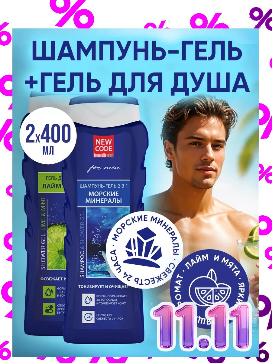 New code Гель для душа тонизирующий + гель-шампунь 400 мл 2 шт
