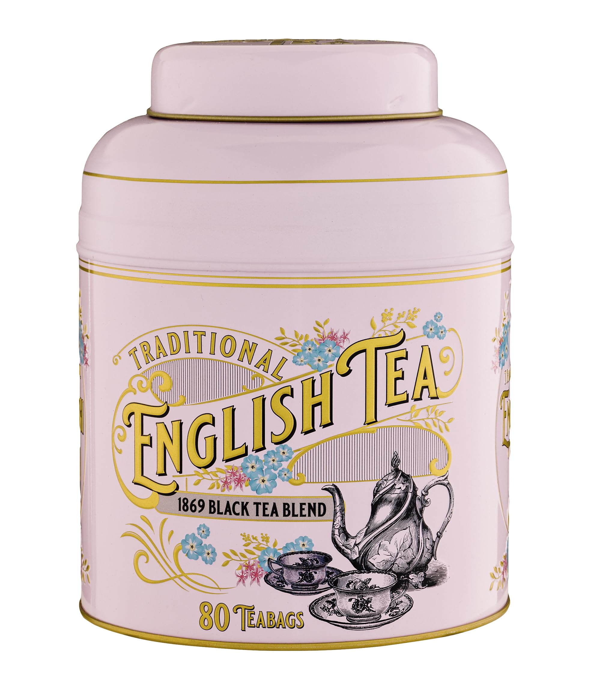 : A vintage Victorian-style round pink tea caddy with Victorian tea illustrations, gold trim, embossing, and azure blue forget-me-not flowers. Forget-me-nots became a symbol of love and remembrance for the Victorians, and it was during this era that tea became more popular due to the introduction of high tea. New English Teas created this tea caddy to convey the message of Victorian sentimentality and giving. With 80 tea bags included, you can enjoy our signature 1869 blend—a strong and full-bodied traditional black tea that is rich in flavor with a smooth and delicious taste. Ingredients: Black tea Instructions: To prepare, place a tea bag in a cup, pour hot water over it, let it steep for 3 to 5 minutes, then remove the tea bag and enjoy. Safety Warning: Contains caffeine. Not recommended for children or pregnant women. See moreMore tea gifts available at New English Teas. Contains 80 English tea bags, 1860 blend. Features vintage illustrations of Victorian teaware and don't forget the flowers.Description du produit Une boîte à thé ronde rose de style victorien vintage avec des illustrations de thé victorien, des garnitures dorées, des gaufrages et des fleurs myosotis bleu azur. Les myosotis sont devenus un symbole d'amour et de souvenir pour les Victoriens et c'est à cette époque que le thé est devenu plus populaire en raison de l'introduction du high tea. New English Teas a crée ce panier pour conboîte à théer le message de la sentimentalité victorienne et du don. Avec 80 sachets de thé inclus, vous pouvez profiter de notre mélange signature 1869 - un thé noir traditionel fort et copieux qui est riche en saveur avec un goût doux et délicieux. Ingrédients Thé noir P.when('A').execute(function(A) { A.on('a:expander:toggle_description:toggle:collapse', function(data) { window.scroll(0, data.expander. expander[0].offsetTop-100) }) }) Mode d'emploi Pour préparer, placez un sachet de thé dans une tasse, versez de l'eau chaude dessus, laissez infuser pendant 3 à 5 minutes, puis retirez le sachet de thé et dégustez. Avertissement De Sûreté Contient de la caféine. Ne pas recommander aux enfants ou aux femmes enceintes. Voir plusPlus de cadeaux de thé disponibles chez New English Teas. Contient 80 sachets de thé anglais mélange 1860. Présente des illustrations vintage de vaisselle à thé victorienne et n'oublez pas les fleurs.New English Teas Boîte à thé vintage rose victorien avec 80 sachets de thé noir 1869