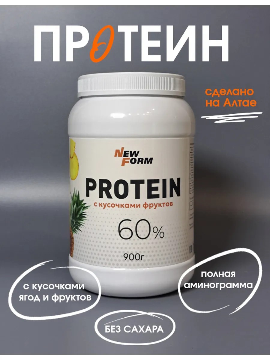 «Protein FRUIT 60%" С СУБЛИМИРОВАННЫМИ КУСОЧКАМИ ФРУКТОВ И ЯГОД - совершенно новый высокобелковый спортивный коктейль от отечественного производителя спортивного питания New Form.